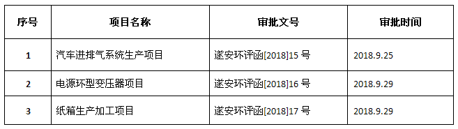 根据建设项目环境影响评价审批程序的有关规定,经审查,2018年9月1日至9月30日我局对3个建设项目环境影响评价文件作出审批决定。现将作出的审批决定情况予以公告,公告期为2018年10月8日-2018年10月19日(10个工作日)。