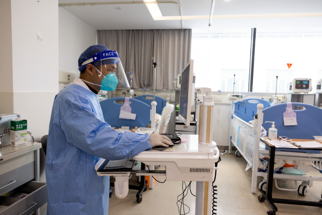 在上海交通大学医学院附属新华医院,儿科急诊医生在输入病例信息。新华社记者 金立旺 摄