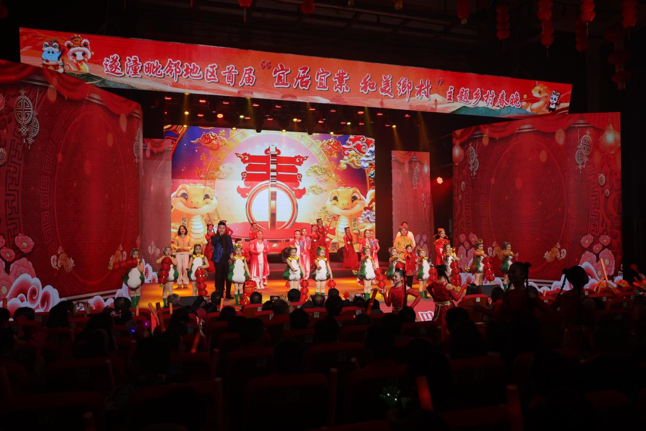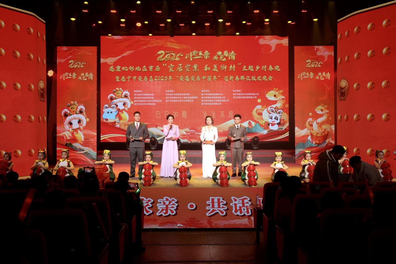 1月20日晚,“川渝一家亲 共话巴蜀情”遂潼毗邻地区首届“宜居宜业和美乡村”主题乡村春晚暨遂宁市安居区2025年“安逸安居中国年”迎新春群众联欢晚会在中国沼气能源革命第一村、安居区海龙凯歌农文旅园区文化大礼堂精彩上演。