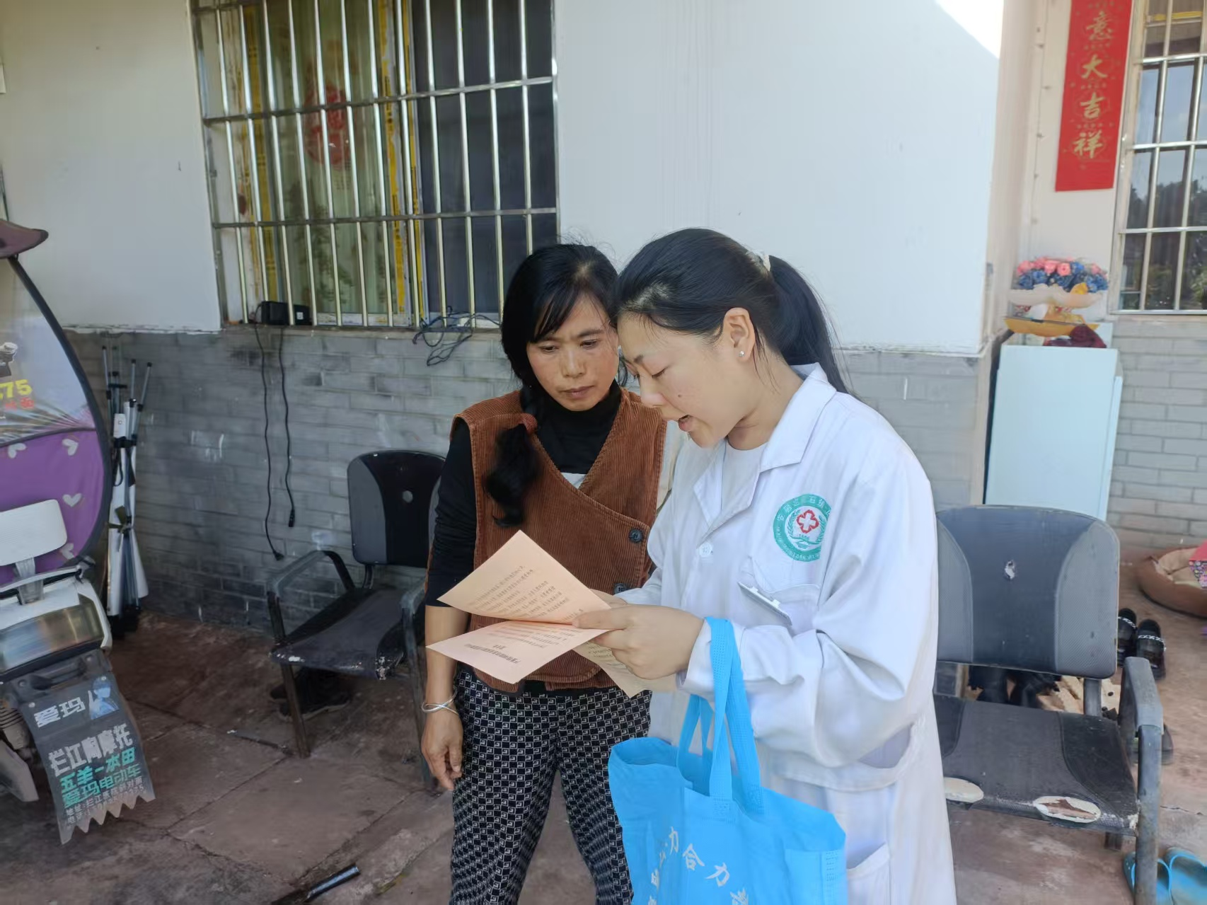 同时,保石镇卫生院精防人员通过下乡入户的形式,对部分患者及家属家庭护理要点开展指导。精防人员向患者家属仔细询问患者情况,讲解了严重精神障碍患者家属平时如何从日常生活、心理、服药技巧等方面进行护理,着重强调了规范服药的重要性。并发放相关宣传资料。严重精神障碍患者病情稳定,离不开家庭的护理。本次健康教育通过专业赋能与情感联结,让“家庭护理”从被动应对转向主动管理,更让“家”成为精神障碍患者真正的避风港。