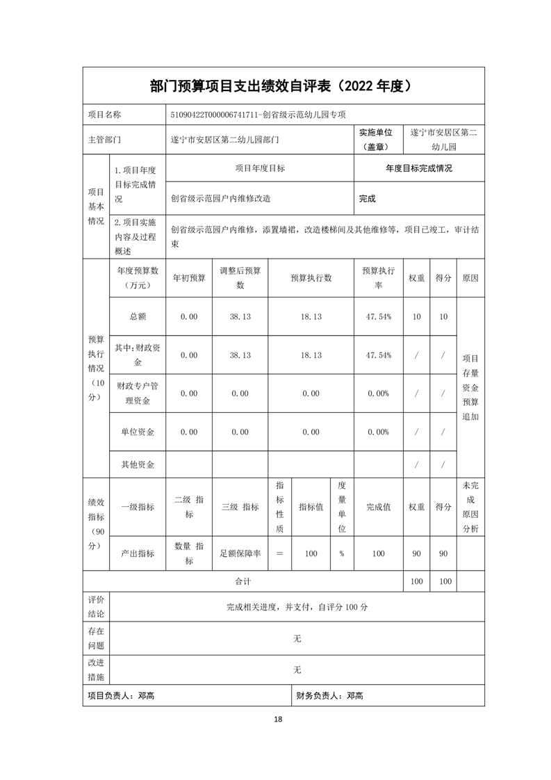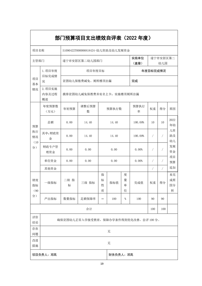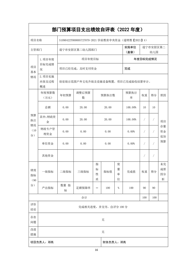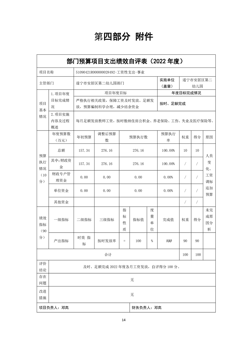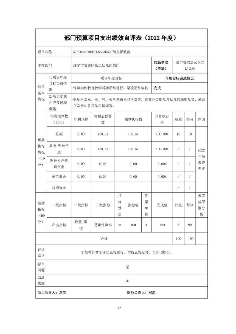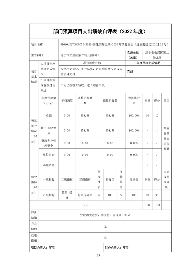 四川省遂宁市安居区第二幼儿园2022年决算