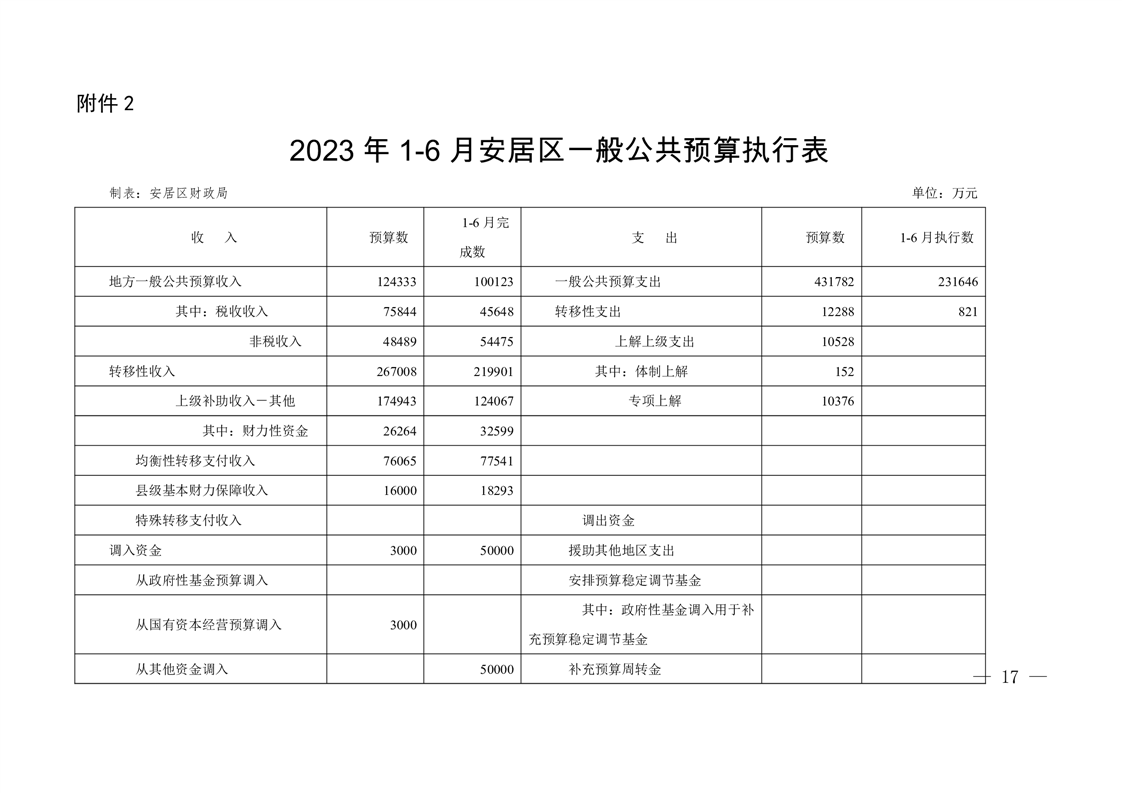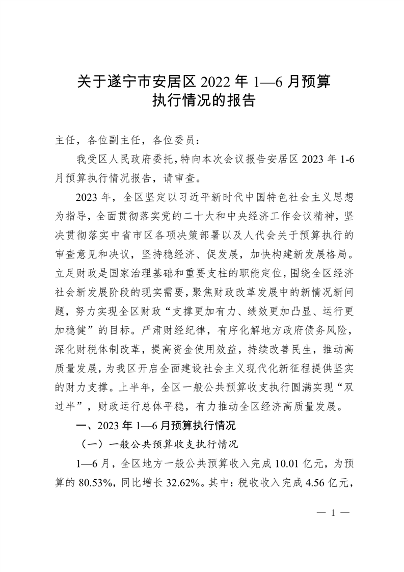 关于遂宁市安居区2023年1-6月预算执行情况的报告