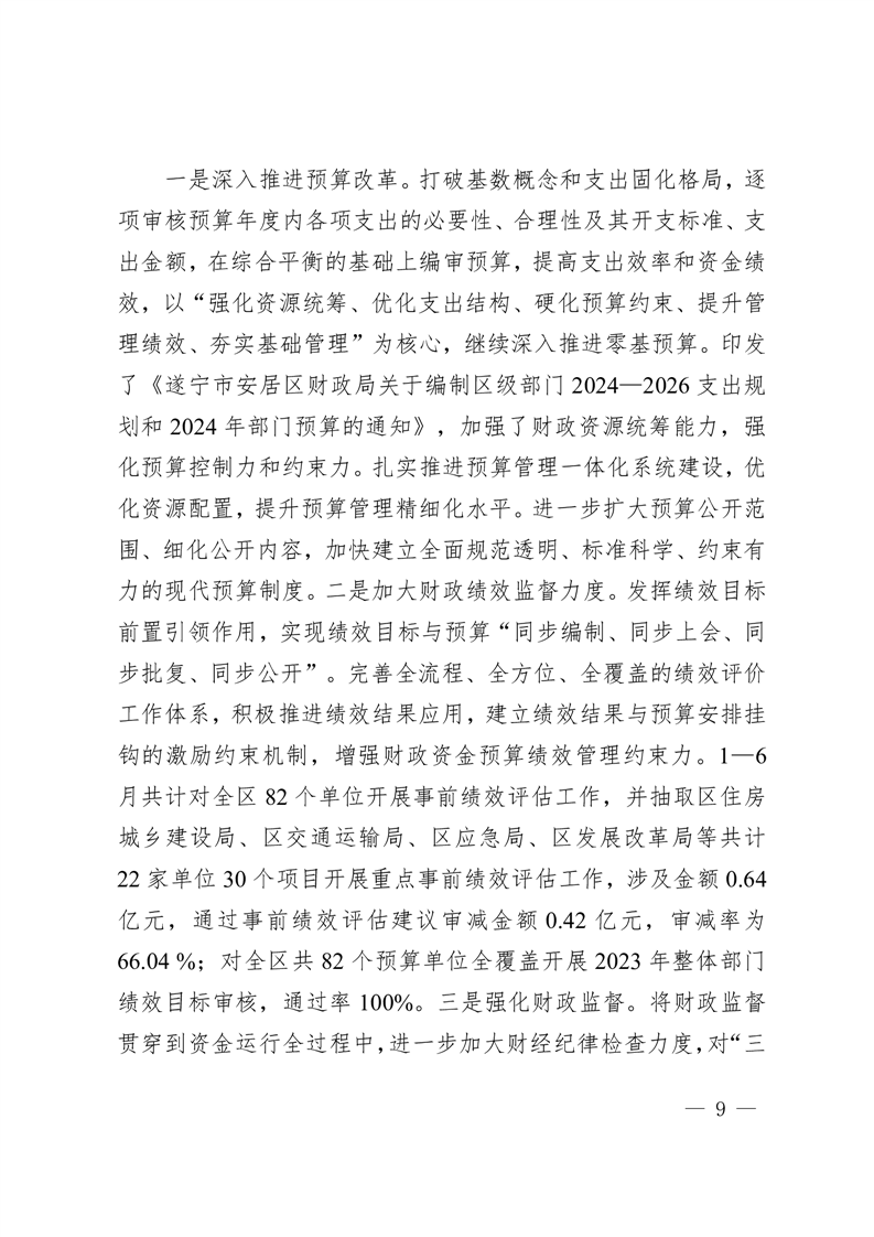 关于遂宁市安居区2023年1-6月预算执行情况的报告.pdf