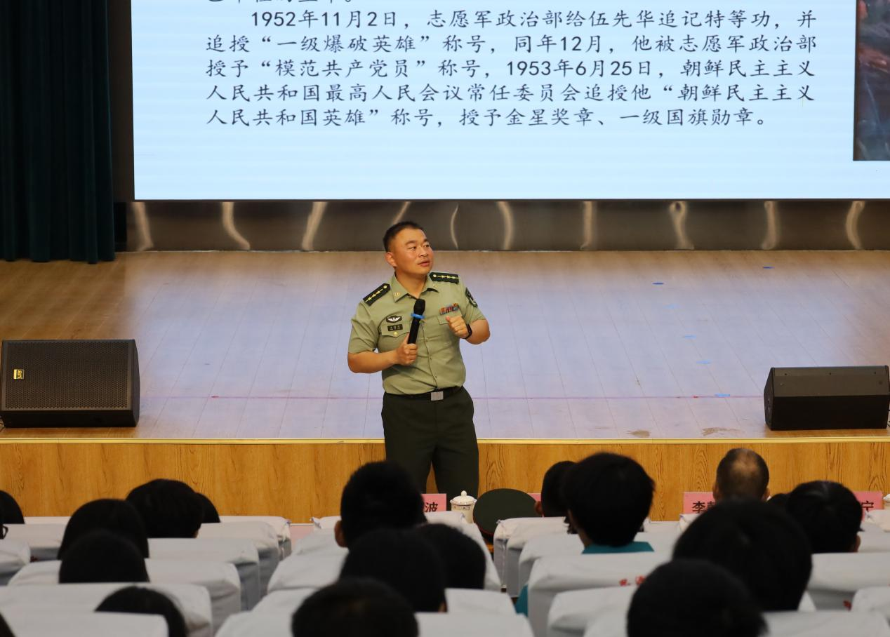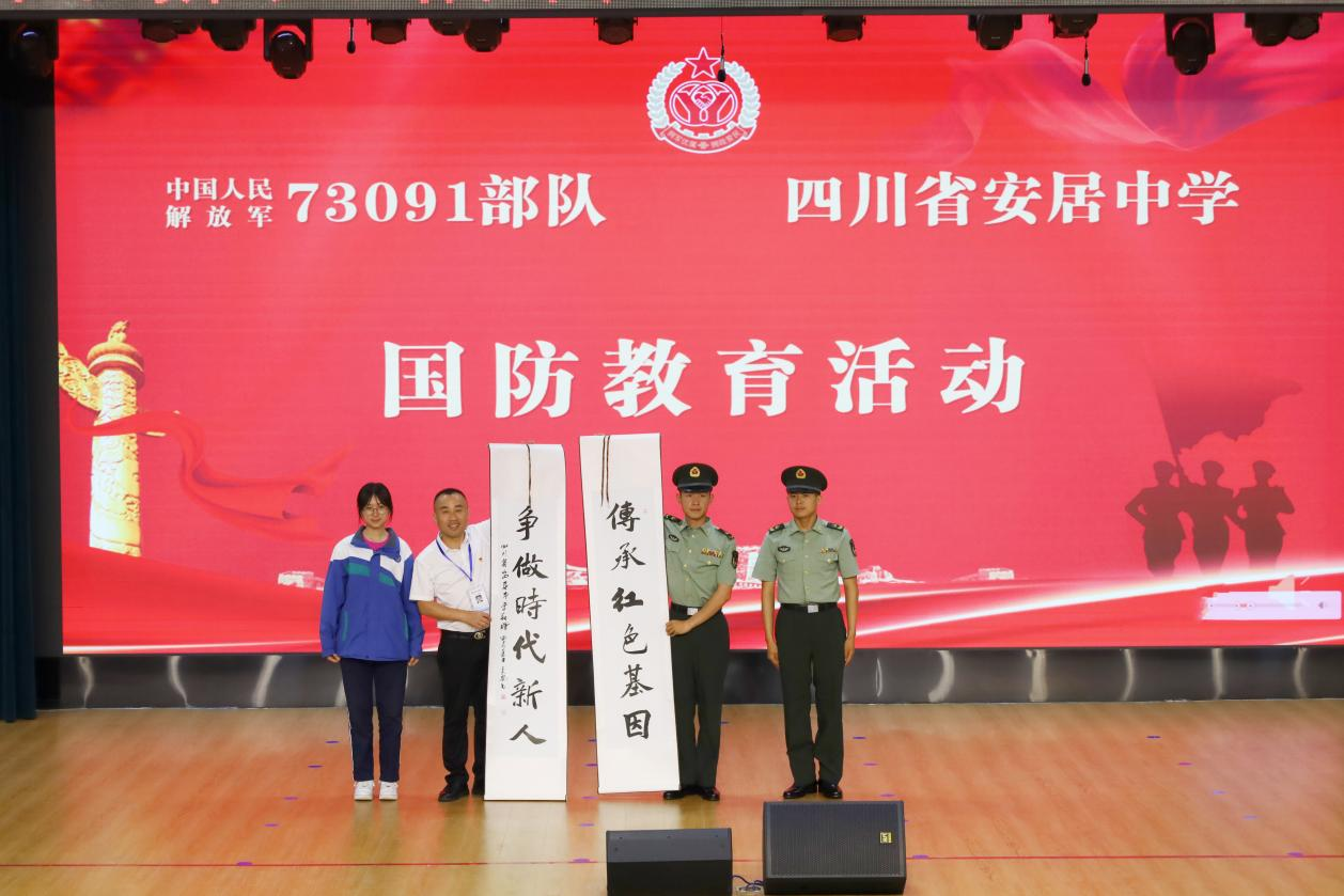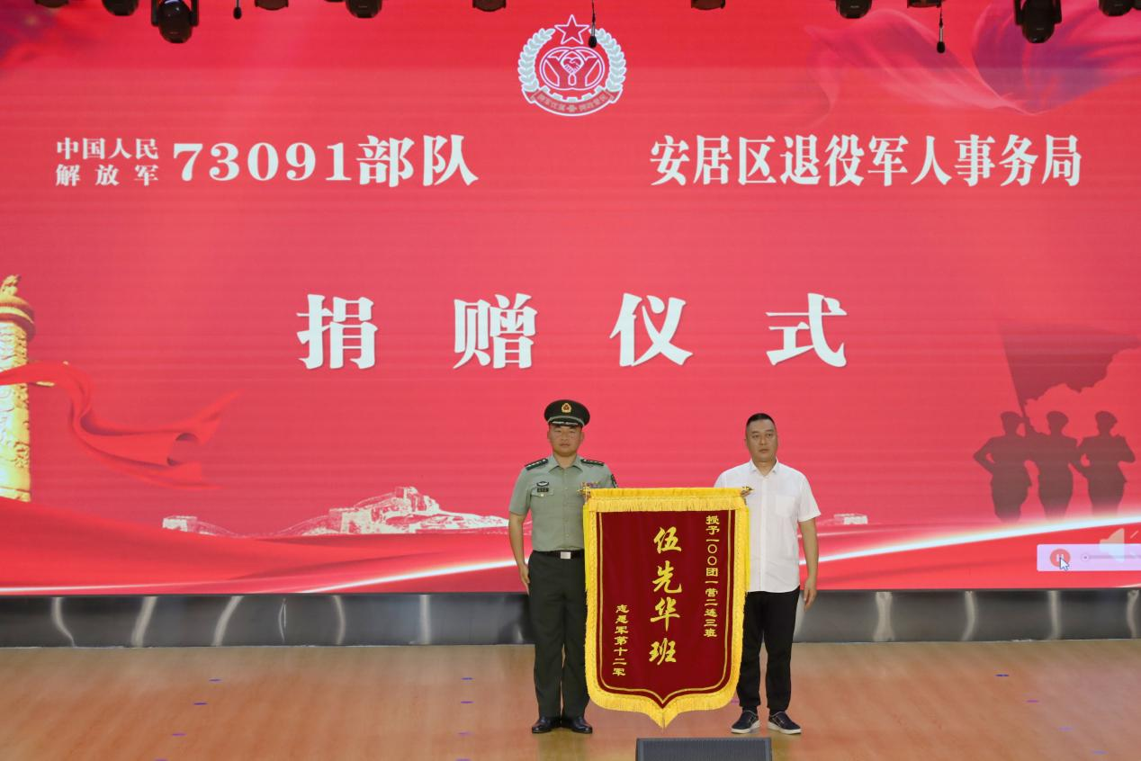 活动现场,播放了73091部队的宣传片,展示了部队的优良传统和精神风貌。随后,73091部队向安居区捐赠了“伍先华班”锦旗,表达了军地双方深厚的情谊;部队官兵代表宣讲了伍先华英雄事迹及“伍先华班”的精神传承,并进行了国防教育知识讲座,使与会的师生们深受启发和教育。
