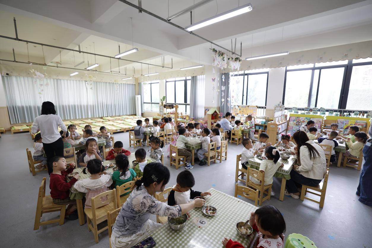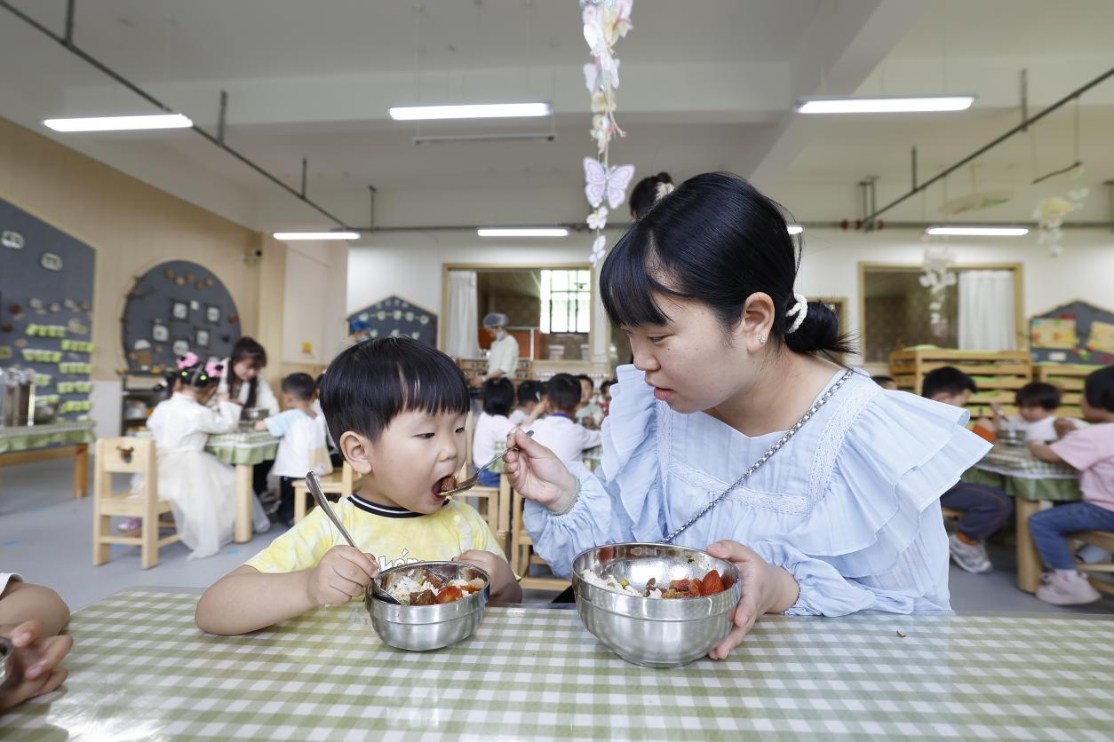 “幼儿园餐食搭配比较合理,味道也可以,孩子在幼儿园用餐让我很放心。”幼儿家长李悦在陪餐后说道。