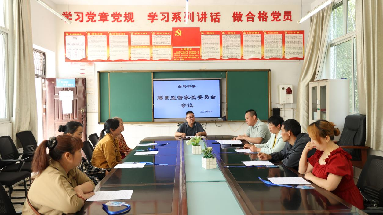 白马中学作为乡镇中学,住宿学生占比达70%,家长对孩子的餐食菜谱与营养尤为关心。从本学期开始,白马中学在原有家长委员会监督的基础上,成立膳食委员会,采取每月一次的方式组织学生家长代表对学校的食堂进行检查和监督,并实行学生家长、行政值周、教师陪餐制度,形成社会各界有序参与、有力监督校园食品安全的共治格局。