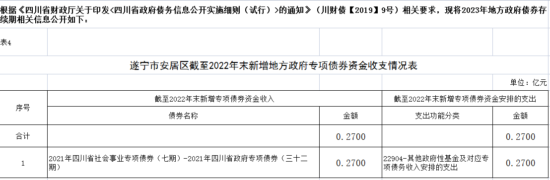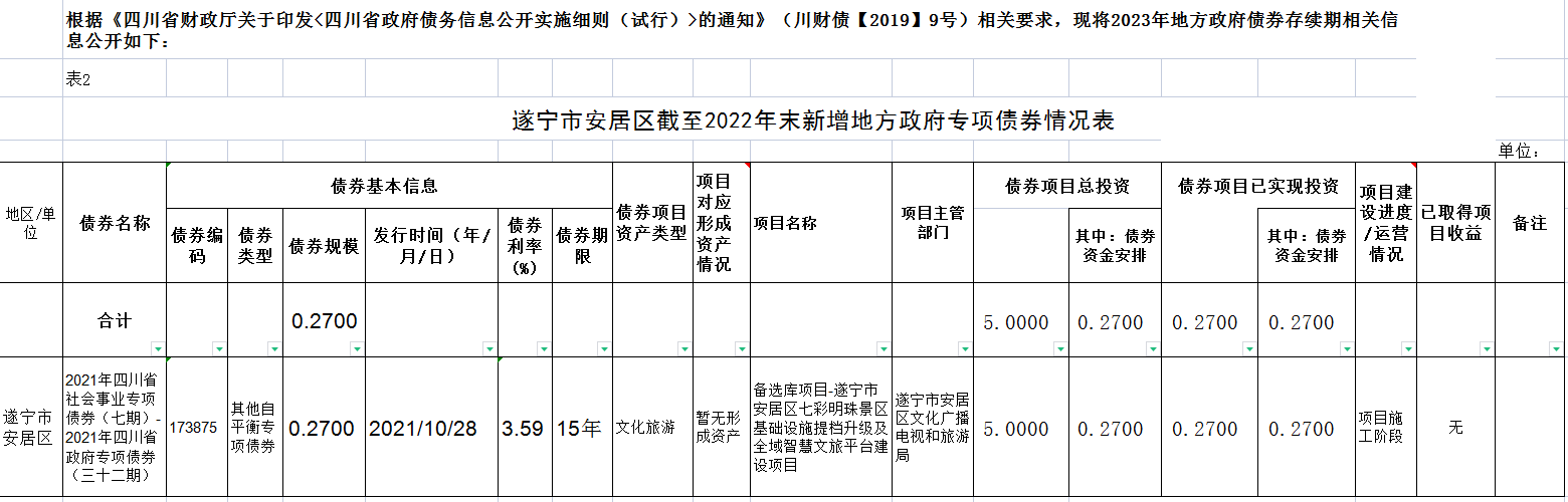 文广旅游局2023年度遂宁市安居区新增地方政府债券存续期信息公开表
