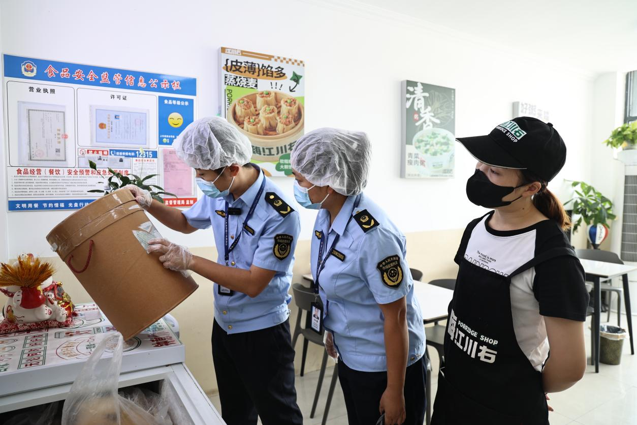 当天,执法人员详细检查了各个外卖餐饮店铺的环境卫生、从业人员健康证、食品加工制作过程、食品添加剂使用、散装原料标签、原材料的采购索证等,并对厨房加工区域进行了重点查看。从检查情况来看,这些被检查的门店整体情况良好,但是部分门店存在食品未覆保鲜膜、食品库房混放、标签管理未落实等问题,执法人员均现场责令立即整改。