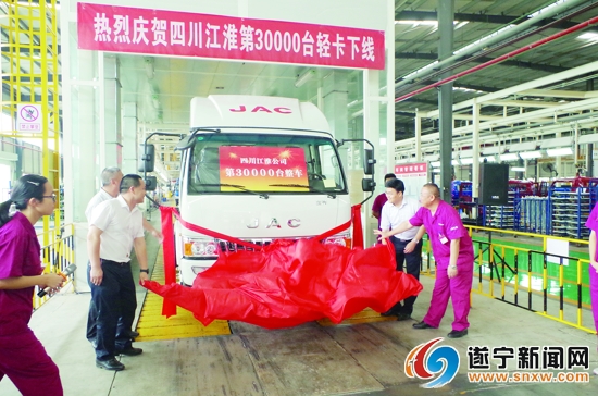 6月26日,四川江淮汽车有限公司在公司总装车间举行了第30000台轻卡下线仪式。区委副书记、区长管昭,区委常委、政法委书记肖舰,副区长曾勇,四川江淮汽车有限公司总经理赵虎以及部分江淮汽车公司的配套经销商、供应商、公司员工参加了下线仪式。