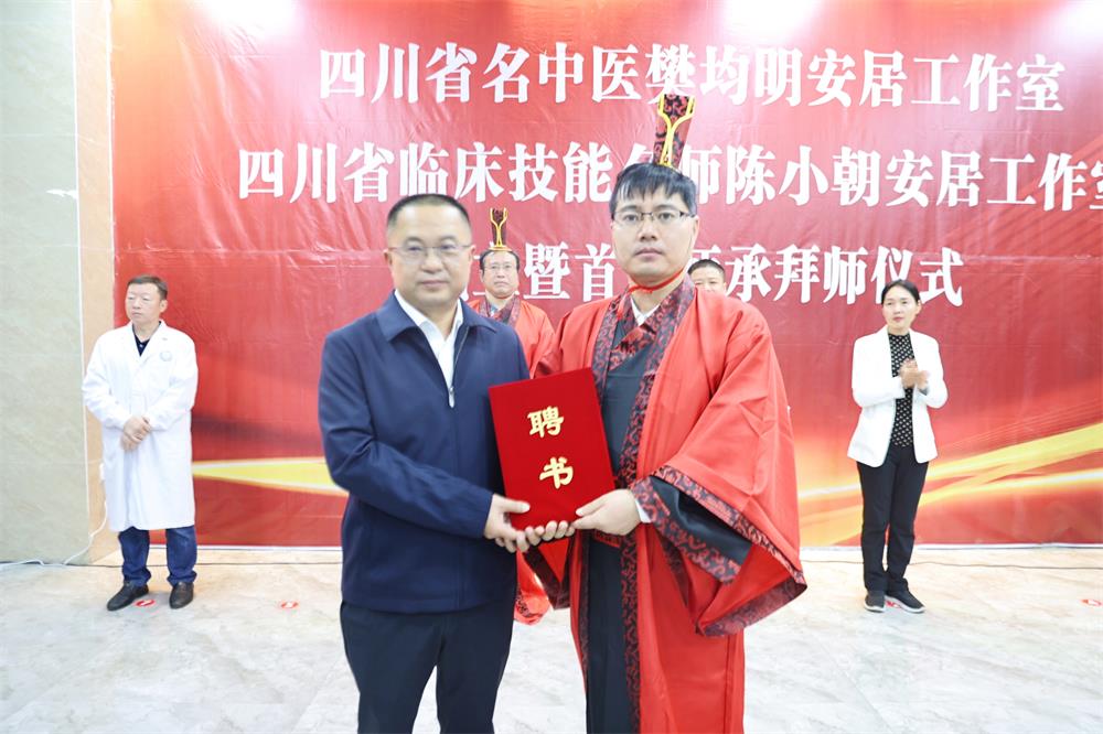 中医是我国优秀的历史文化遗产,为中华民族繁衍昌盛发挥了不可替代的作用。师承面授、耳提面命是弘扬中医药学术传统且有效的教育方式,是培养和造就中医药高级人才,促进中医事业继往开来的重要途径。9月28日,四川省名中医樊均明安居工作室、四川省临床技能名师陈小朝安居工作室开诊仪式暨首届师承拜师仪式在安居区人民医院举行。区委常委、宣传部部长、区总工会主席谭久宏,副区长张玲参加。