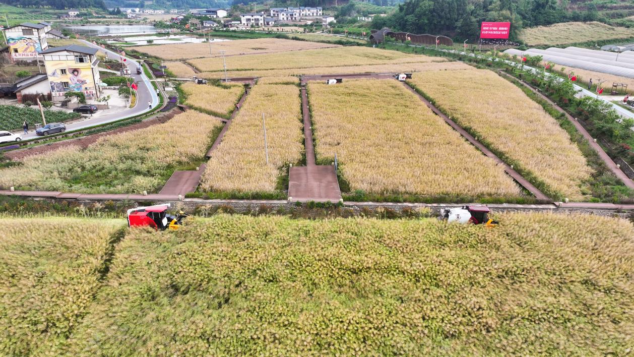 “正常机械损失率在20%,我们通过调整收割机滚筒转速、筛网间隙等参数,将油菜籽损失率控制在10%以内,让‘颗粒归仓’有了技术保障。”收割现场,四川下泥巴人农业科技有限公司负责人介绍,一台收割机日均作业50亩以上,效率是人工收割的数十倍。更关键的是,机械化收割实现了“收割-脱粒-秸秆还田”一次完成,粉碎还田的秸秆还能增加土壤有机质含量。