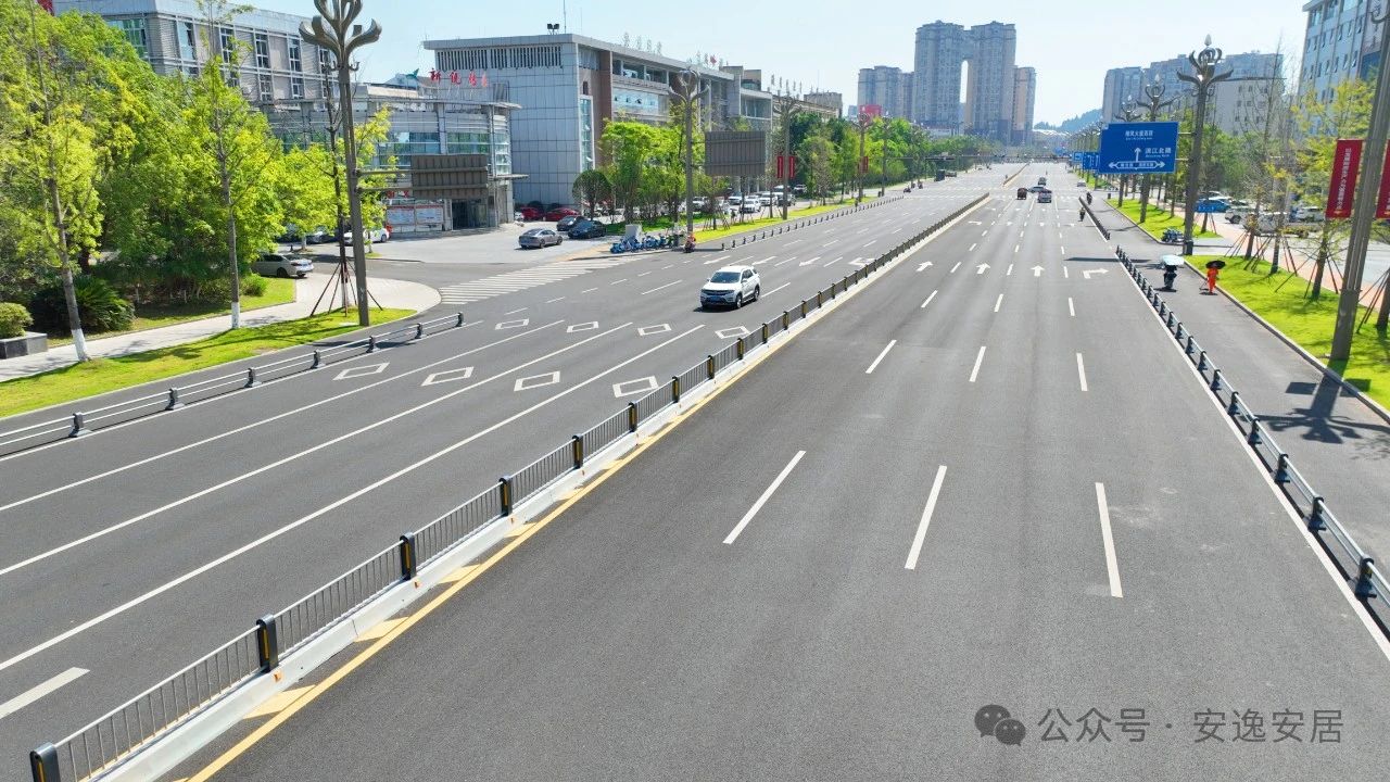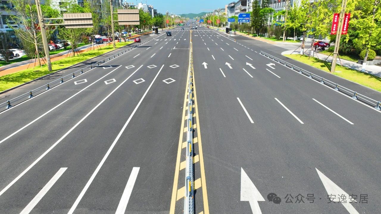 安居大道全长8.3公里,双向8车道设计增加了道路的通行能力,为市民提供了更加便捷的出行条件。