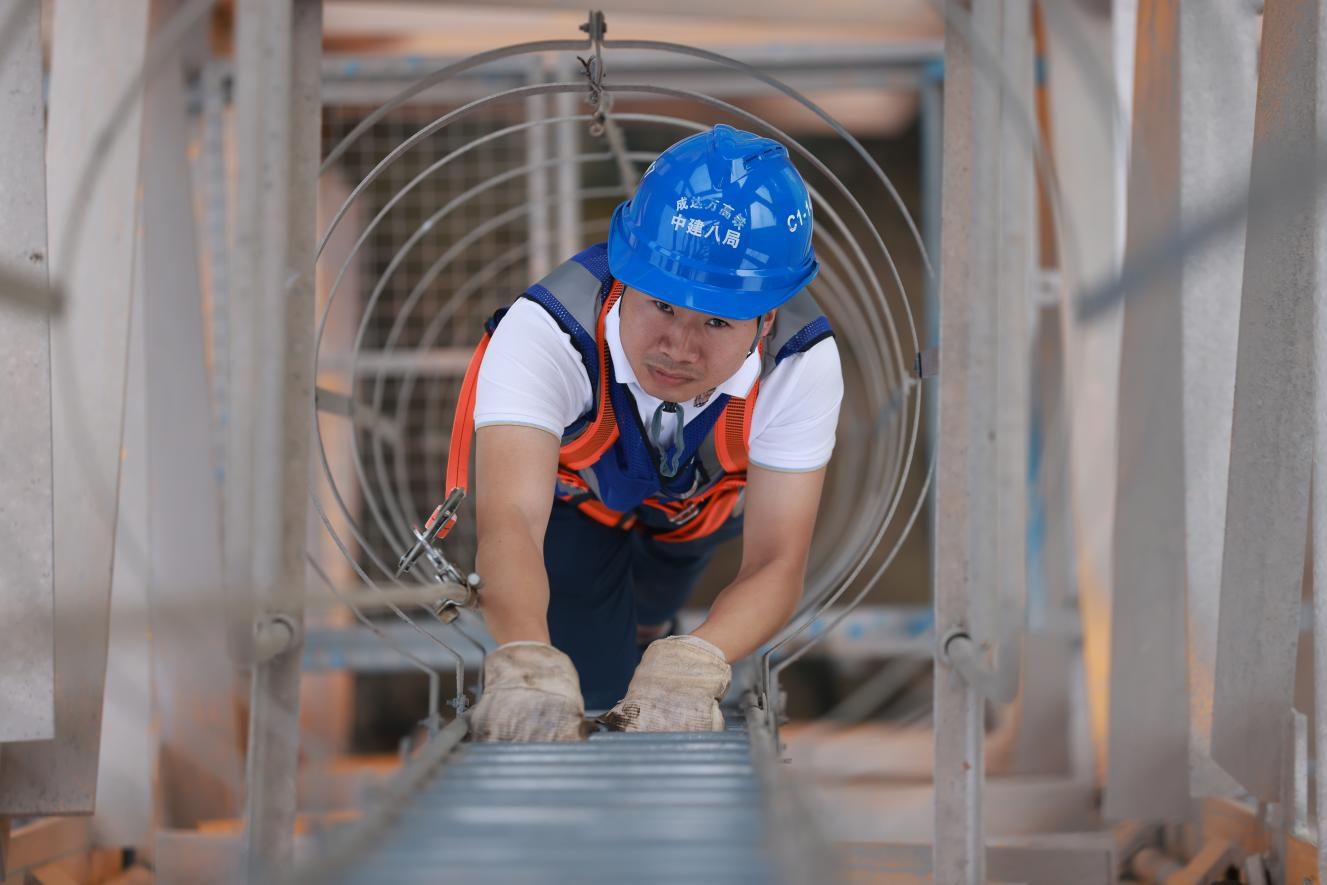 作为成达万高铁项目建设的“后勤基地”,在安居制梁场内,40余名工友忙着对箱梁的钢筋进行绑扎;在全长272.4米的桃子园村4号大桥箱梁架设现场,重约700吨预制箱梁在项目工程师的操作下精准落位;在全线控制性工程-白安河特大桥施工现场,塔吊司机在高空娴熟地拨弄着操作手柄,通过塔吊搬运着建材。