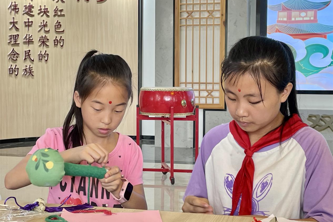 “我第一次学着做了香囊槌,很有收获!”安居二小学生杜家悦开心地表示。