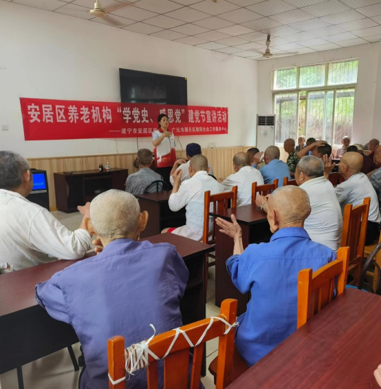 7月13日这天,社工入院通过开展《学党史、感恩党》红色宣讲会,传承红色基因,弘扬红色文化,牢记党的历史,通过感恩教育,激发老人忆党情、感恩党、永远跟党走的爱党之情。