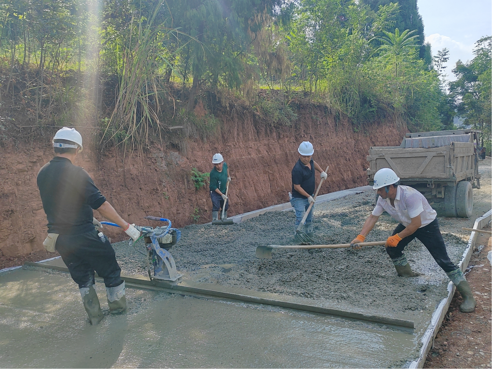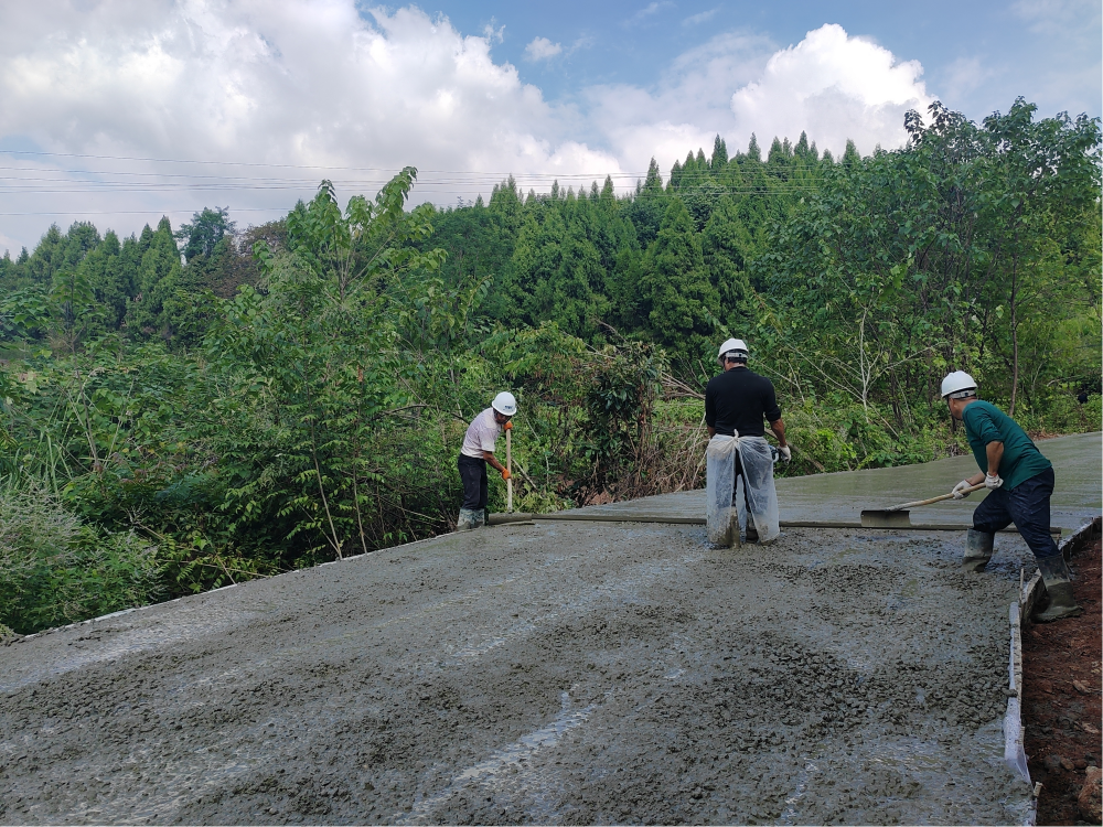 “我们前期完成了路面的碾压,现在正在浇筑路面,浇筑进度接近一半,预计在10月底把路面全部硬化完成,方便群众出行。”聚贤镇和平村蔬菜产业提升发展项目施工方负责人王兴国说。