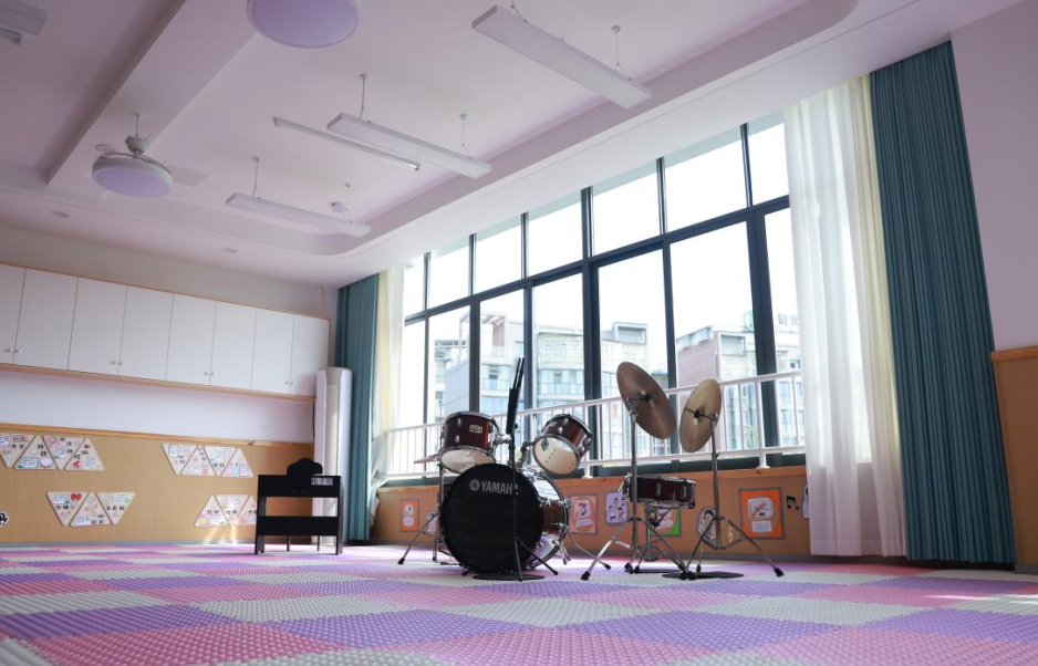 色彩缤纷的主题墙绘、精心布置的功能教室、整洁有序的活动区域