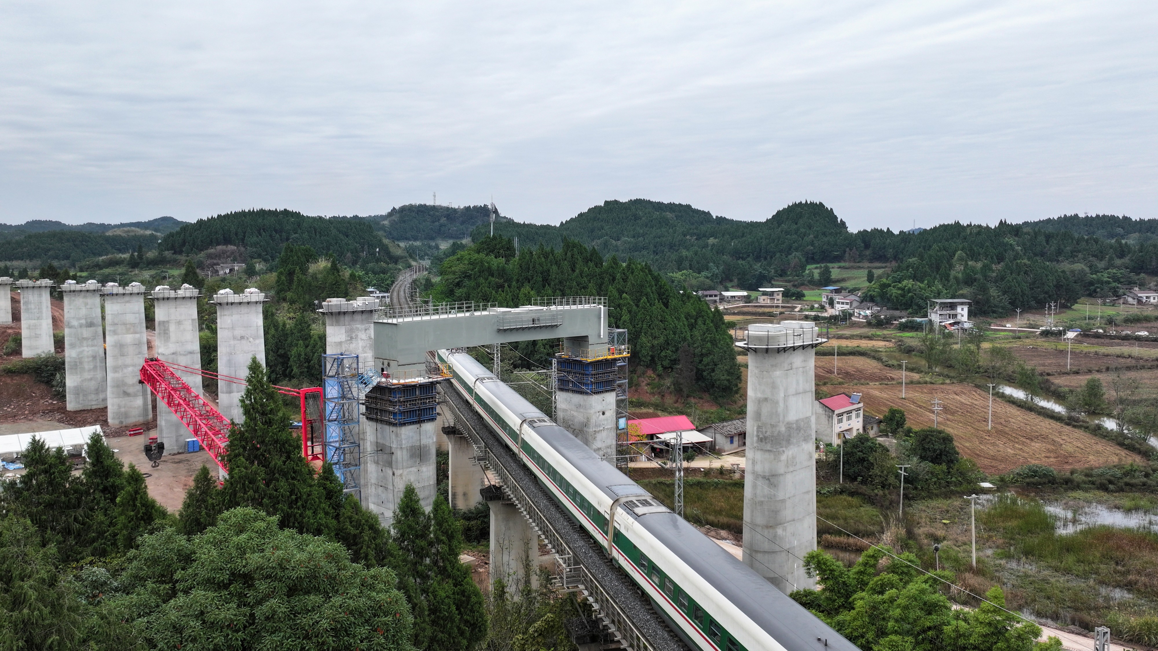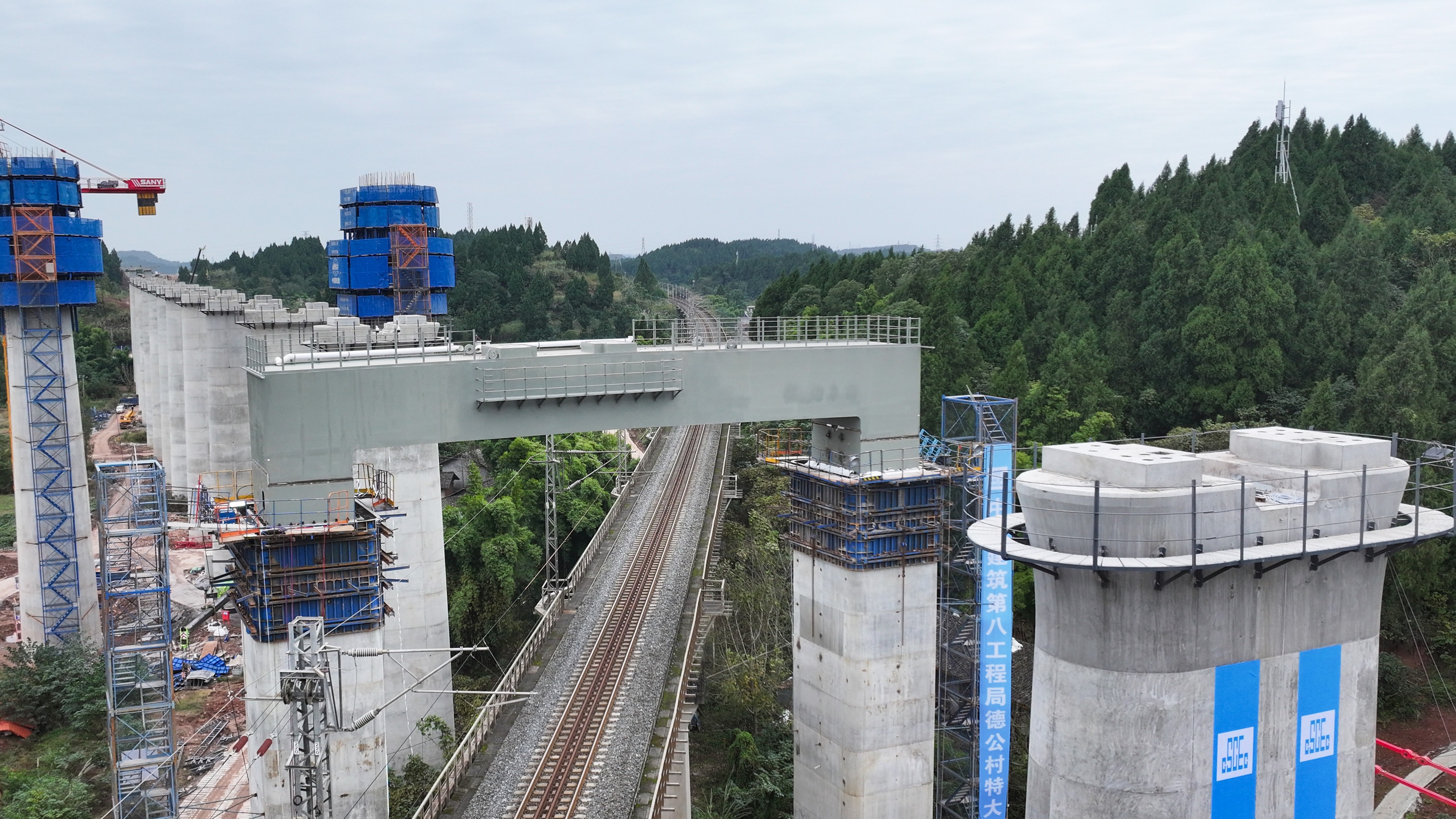 中建八局成达万高铁工程指挥部副指挥长范海波表示,德公村特大桥是全线关键控制性工程之一,施工中需四次上跨既有运营铁路。根据当前建设进展,预计12月初完成最后上跨既有线箱梁架设任务。