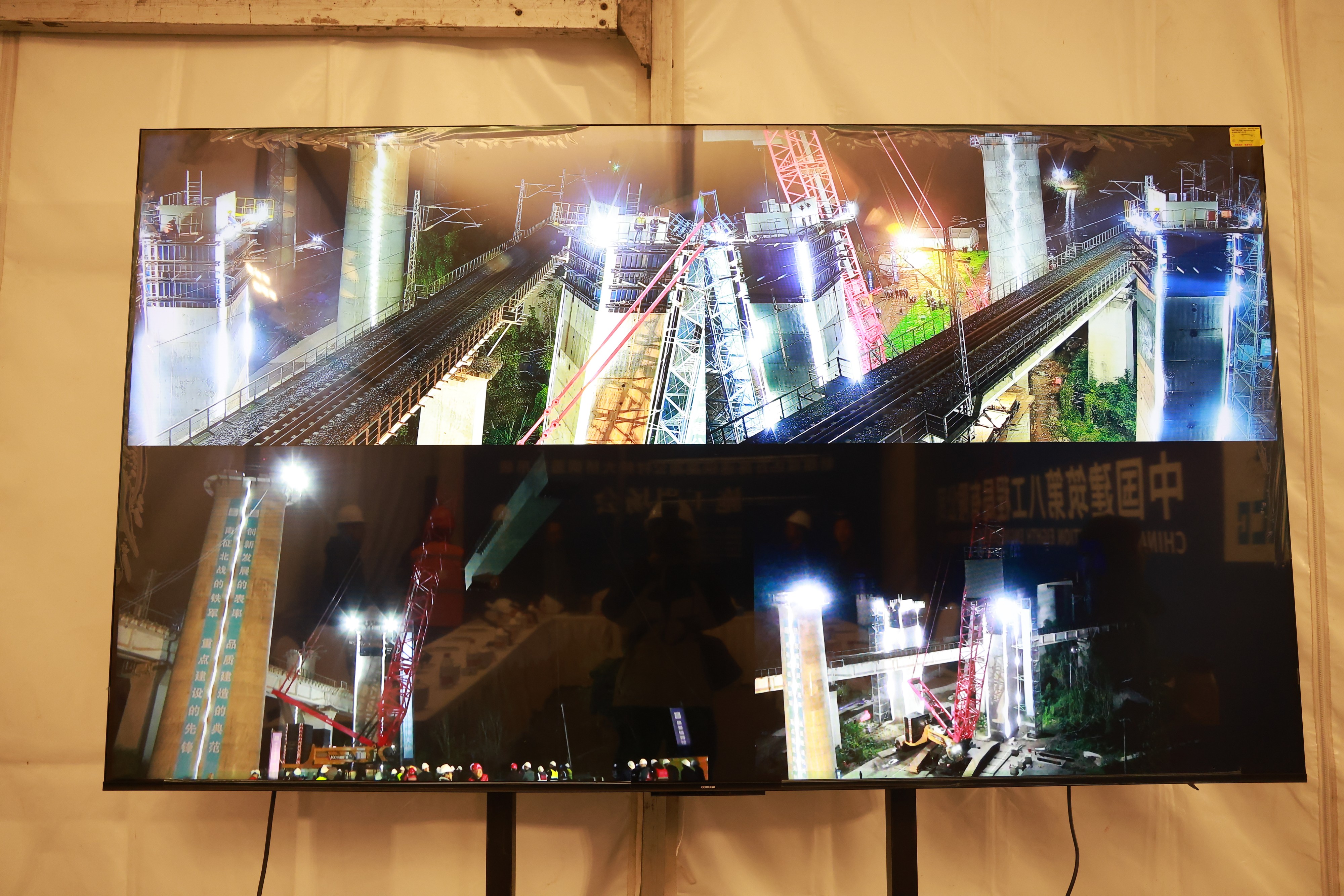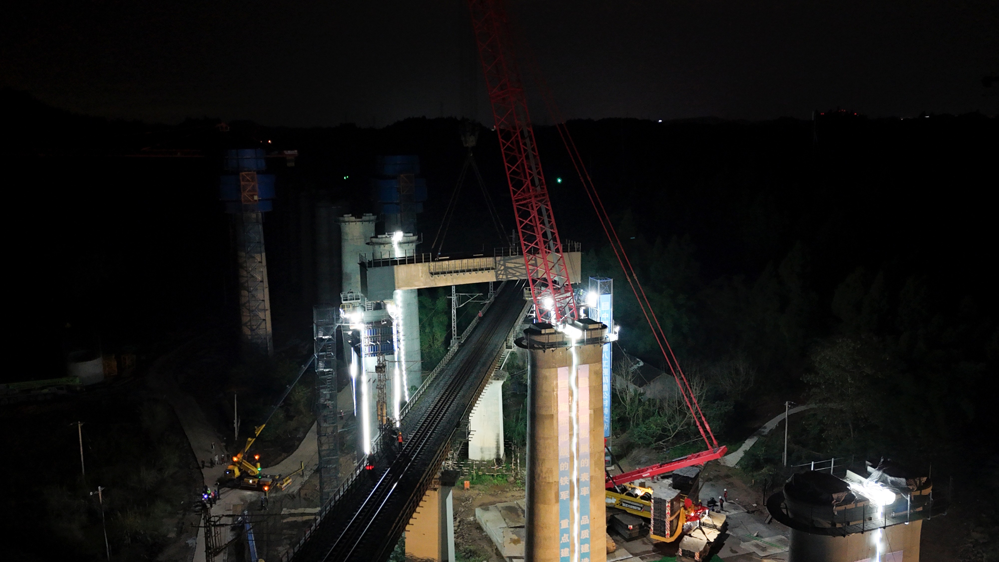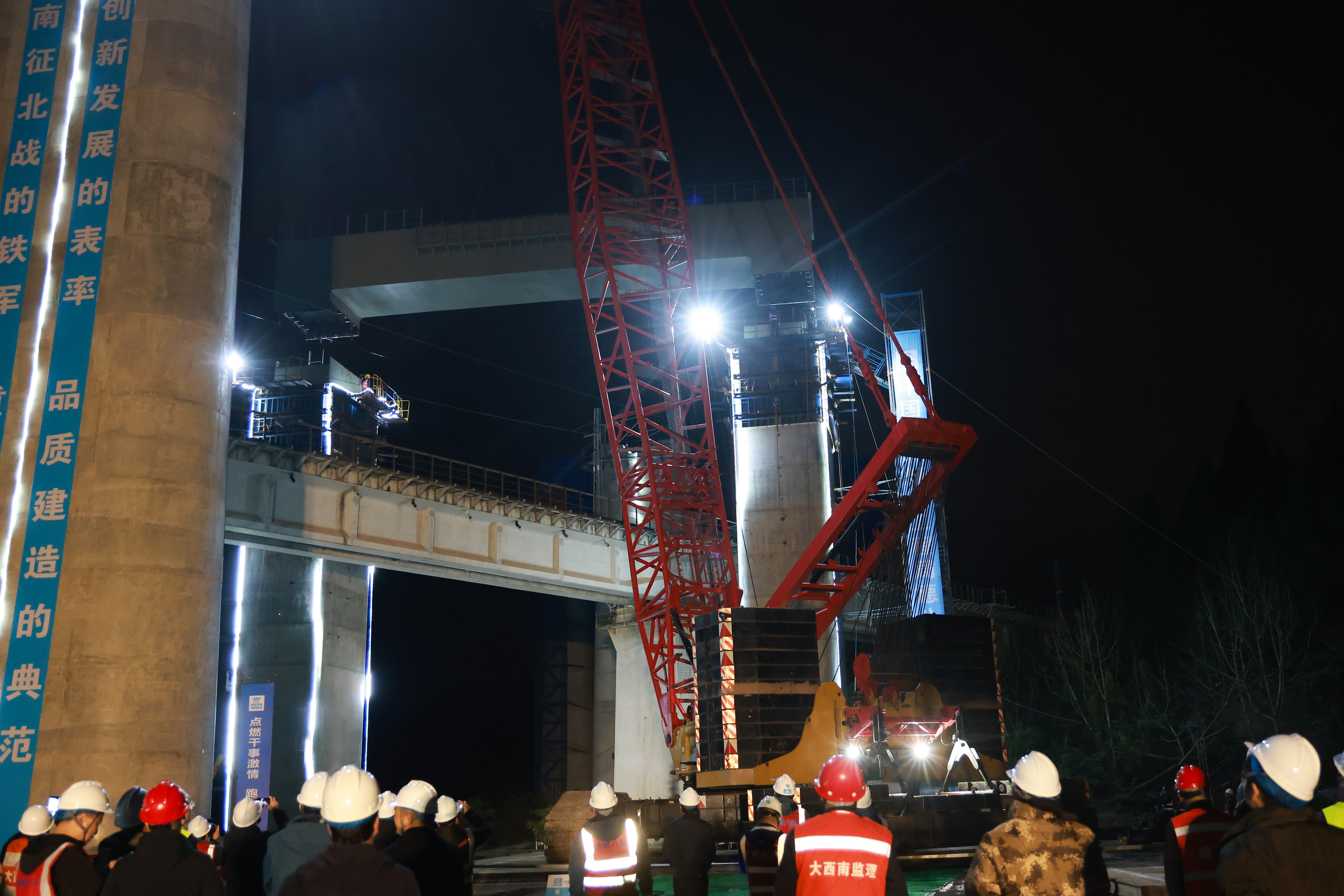 为确保吊装精准安全,成达万高铁公司建设指挥部组织施工、设计等单位多次优化施工方案,现场运用“无人机航拍+智能监控系统”构建立体监控网络,实现全过程实时盯控。整场吊装历时120分钟顺利完成。