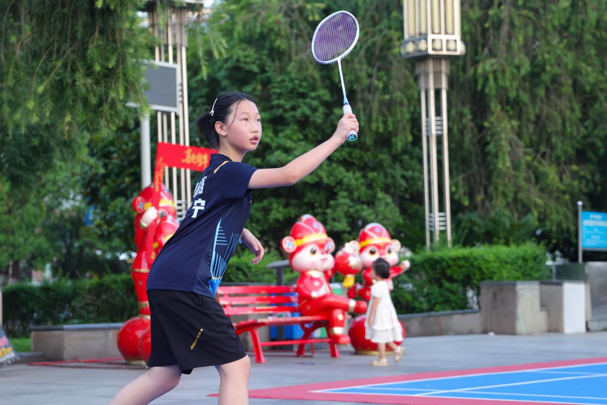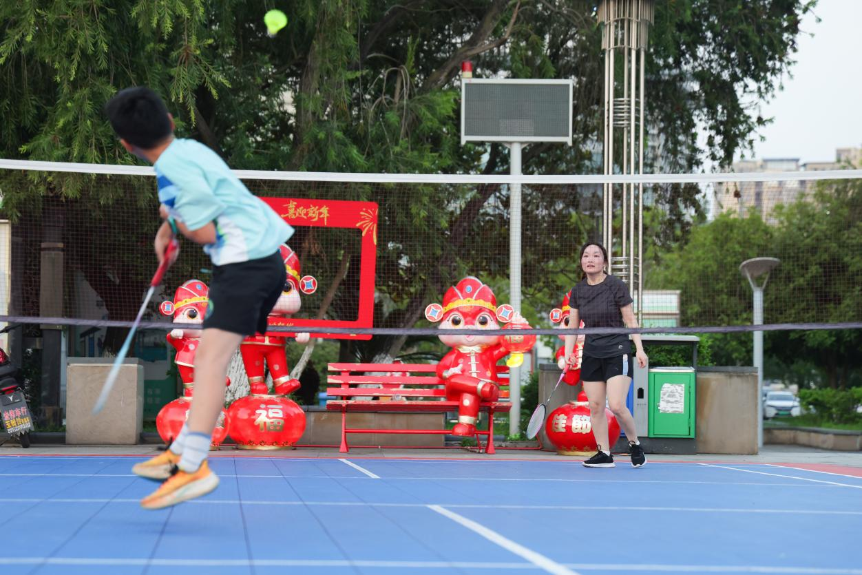 “我们就住在这附近,平时小朋友学习压力挺大,放暑假就带过来运动放松一下,而且这个场地宽敞,小朋友能结识更多的朋友,还可以切磋技艺。”带着孩子来打羽毛球的市民邓艳红满意地说。