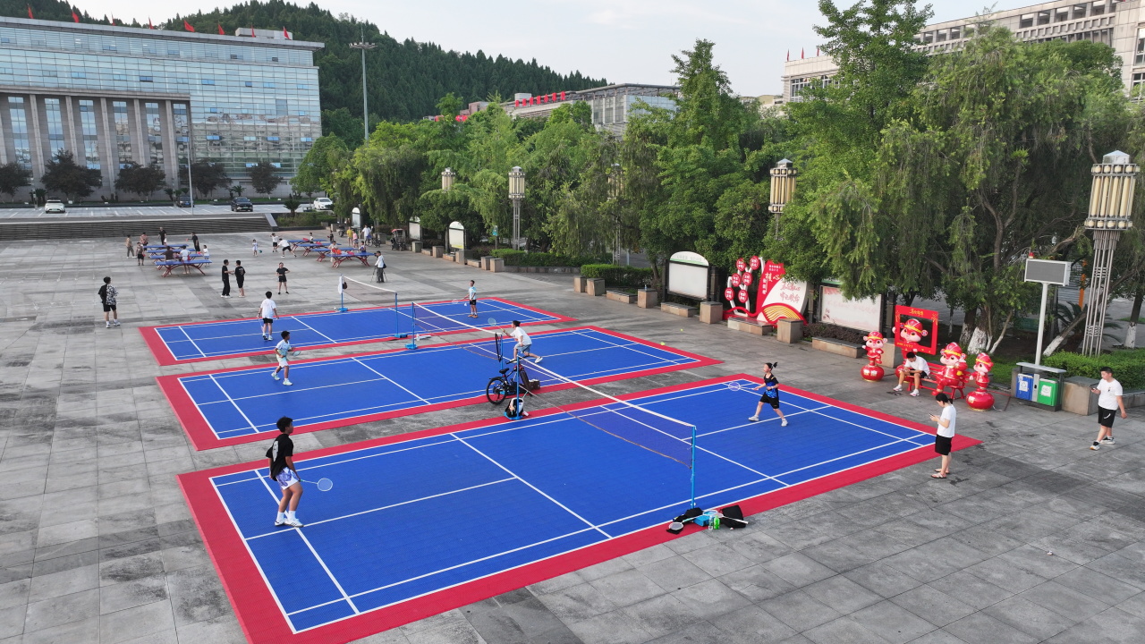 这正是安居区盘活城市“金角银边”、精准对接群众需求的生动实践。针对和谐广场人流密集、健身需求旺盛的特点,今年初,安居区因地制宜,利用广场一侧的空旷地带,巧妙设置了3个标准羽毛球场地和8个崭新的乒乓球台,全部免费向市民开放,让“家门口”的健身变得触手可及。
