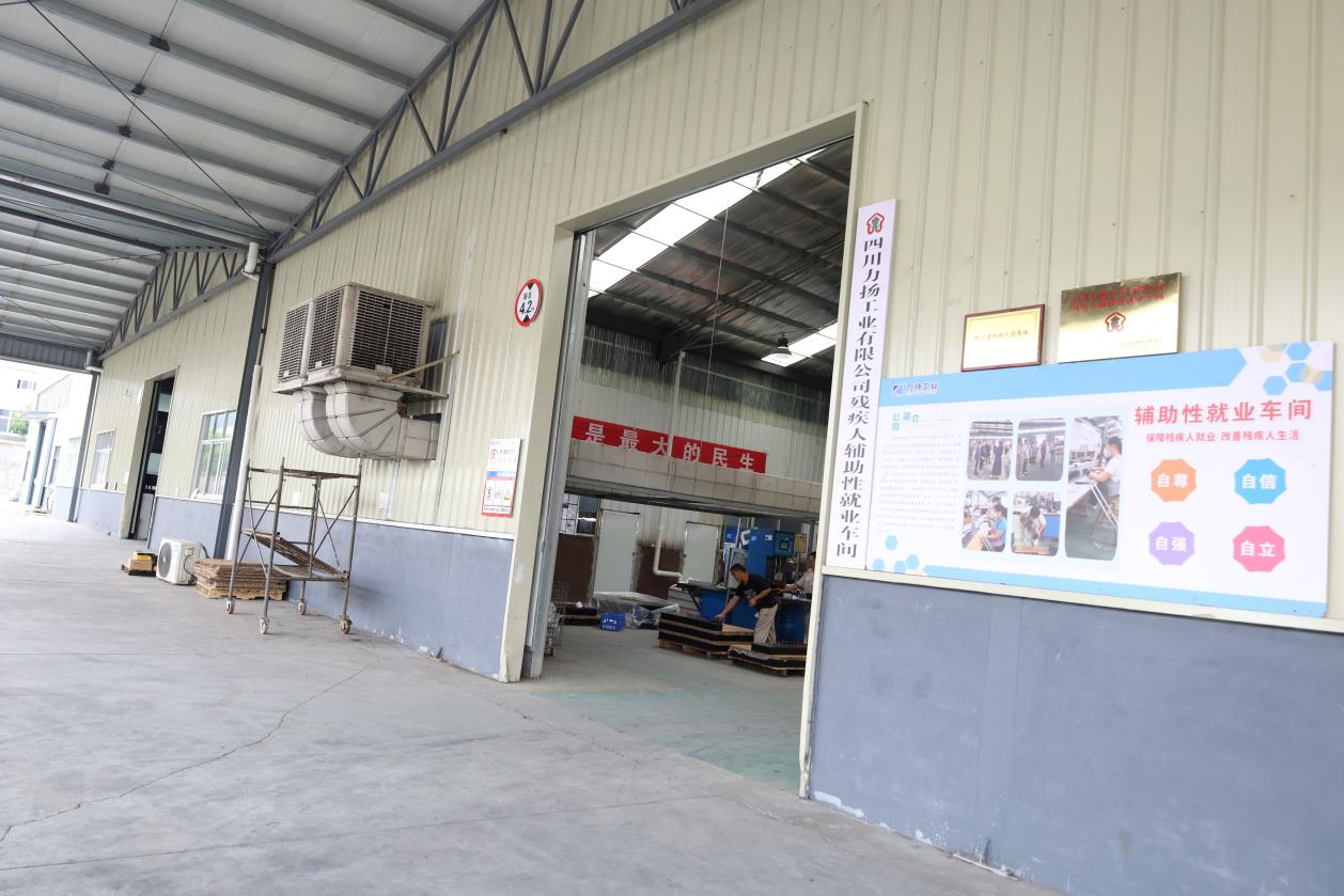 2021年6月,在安居区残联的指导下四川力扬成立了辅助性就业车间,根据残疾群众不同情况,为他们提供了保洁、包装、门卫等工作岗位,已累计为800多名残疾人解决了就业问题。2024年,四川力扬获得了中国残联授予的“全国残疾人按比例就业基地”称号。