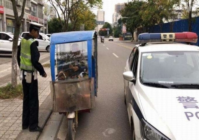 为切实加强城区道路交通秩序管理,提高道路通行效率,区交警大队根据辖区实际情况,科学安排警力,在辖区安居大道、二十四米街、三十米大街、琼江路、客运站等主要路口、路段,合理设卡设点,严查电动三轮车违法载人、机动三轮车无证驾驶、闯红灯、不按规定车道行驶等交通违法行为,持续开展整治工作,保障城区良好的交通秩序,预防和有效地降低道路事故发生率。图为区交警大队民警严查城区机动三轮车。