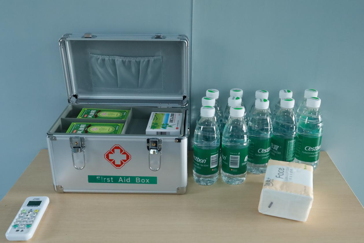 在位于小祠街的驿站内,15平方米的驿站空间,墙面插座、空调、热水器等基础设施已安装完毕,防暑药品和饮用水也已备好,只待定制桌椅和置物架入场安装。与此同时,位于印象广场、栖凤大道东段、刘家坝东门的三座驿站也将在本月内完工。