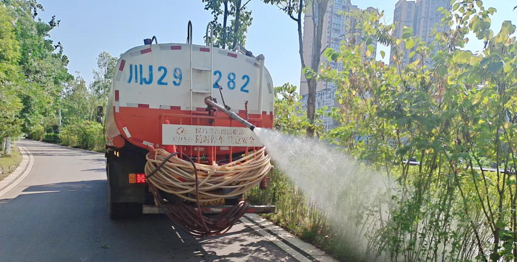 近来,安居持续高温让城区道路绿化、公园绿化很“口渴”,需要大量“补水”,区综合执法局积极做好抗旱保绿工作,把城区公用绿化浇水作为当前养护管理的重点,利用早晚时间组织6辆洒水车对城区约52万平方米绿化进行浇灌,有效缓解了城区绿化旱情。