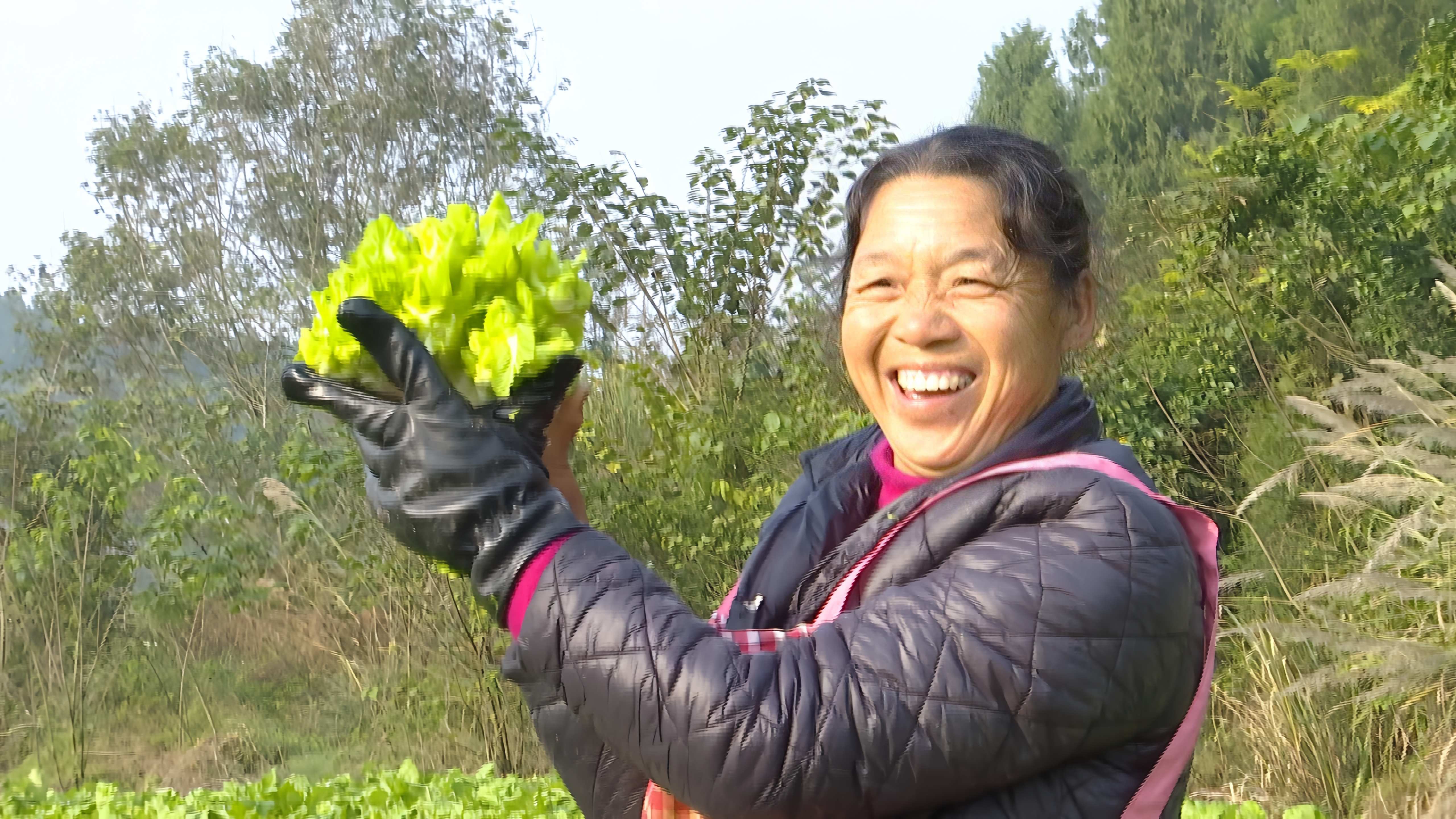 “我在这儿砍儿菜,一天能挣200块钱左右,要忙两个多月,过了年还能继续收榨菜。”黄林沟村村民杨宝珍笑着说。