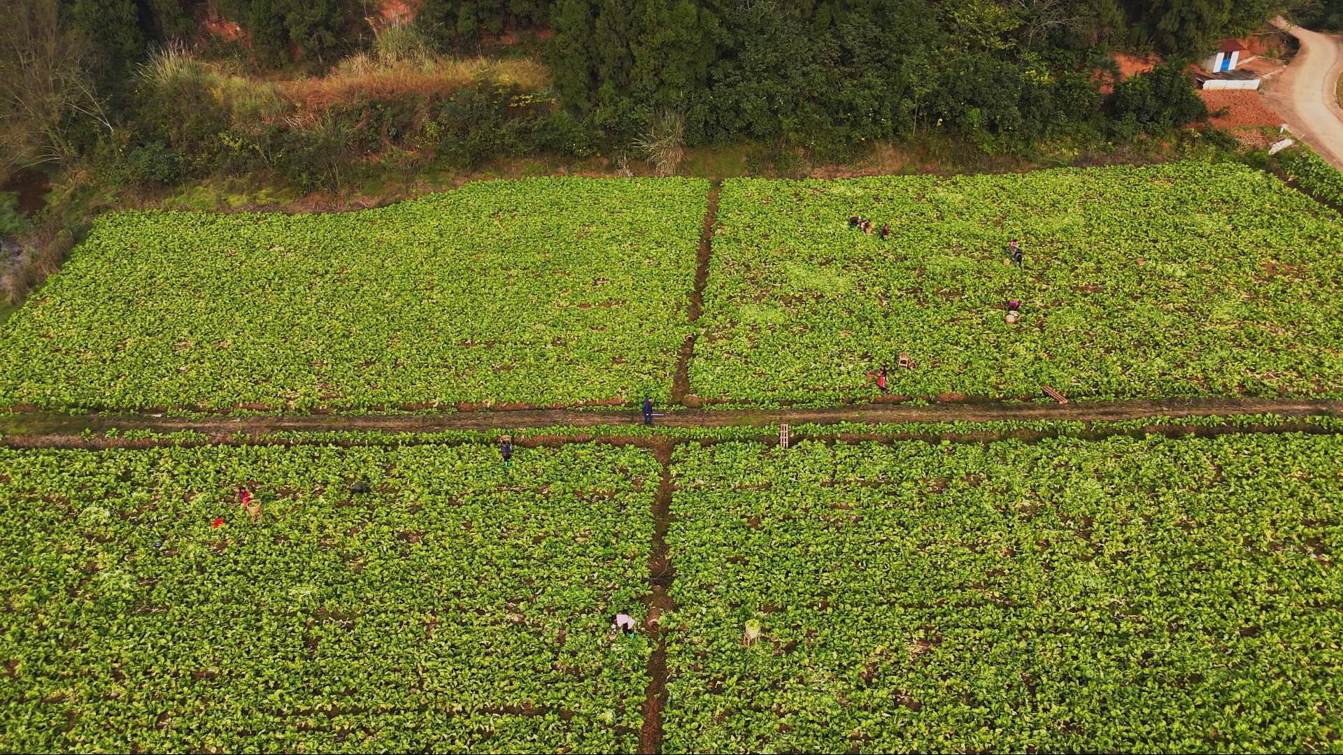 “基地日常用工超百人,采收期每天有20至40人参与砍收,按量计酬,手脚麻利的村民日收入高时可超两百元。”基地负责人任俊舒介绍,“儿菜收完后,我们计划接茬种植西瓜和南瓜。”