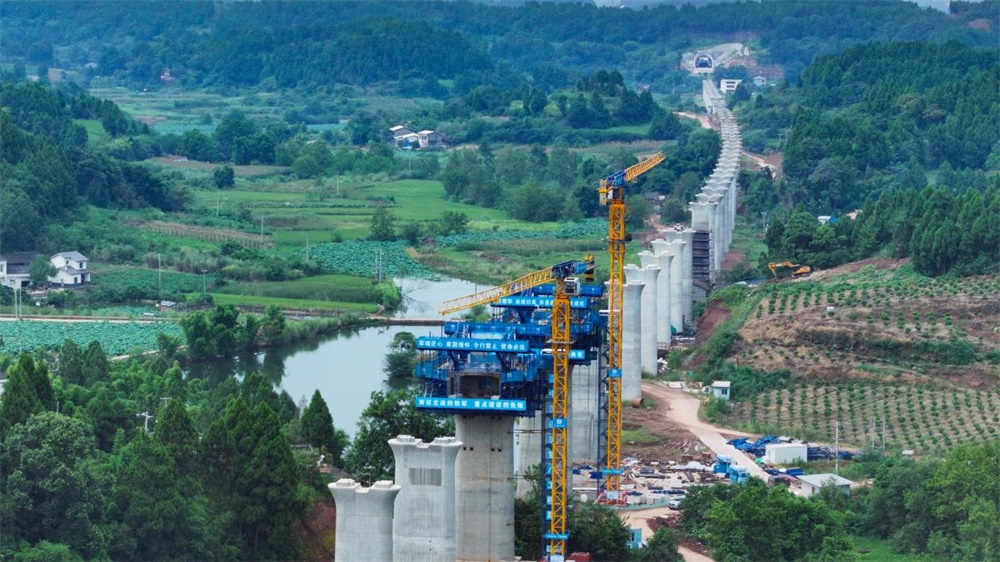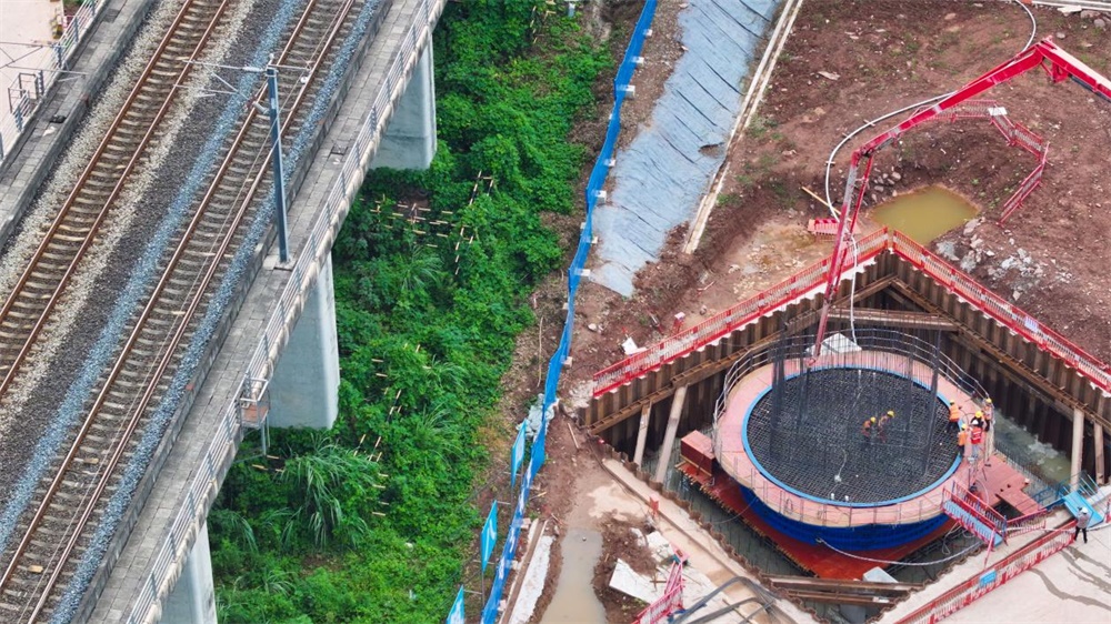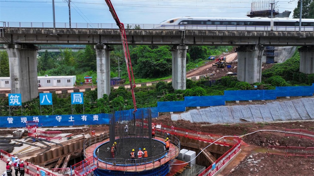 “37号转体主墩与既有桥梁的距离仅为10.2米,墩身与接触网回流线距离仅有14.1米。”成达万高铁项目5标一工区总工程师马辰介绍,精确的施工距离要求,不仅考验着施工团队的技术水平,更对工程的安全性提出了极高要求。