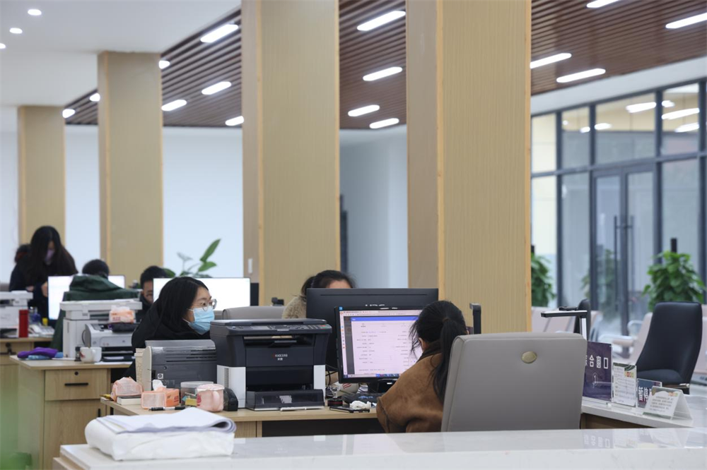 “以前的便民服务中心面积小、群众停车不便,新建的便民服务中心紧邻玉珑路,方便停车,并且面积大了不少,让群众舒心、畅心、安心办事。”拦江镇便民服务中心主任彭红介绍。