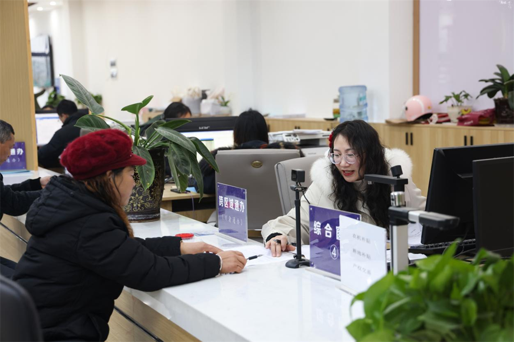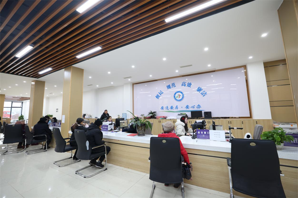 “现在这个新的便民服务中心环境是真的好,服务也好,窗口也更多了,我们一目了然就能找到办事的窗口。”1月8日,在拦江镇便民服务中心,宽敞、整洁的办事大厅,让前来办理养老保险的周群英不断点赞。