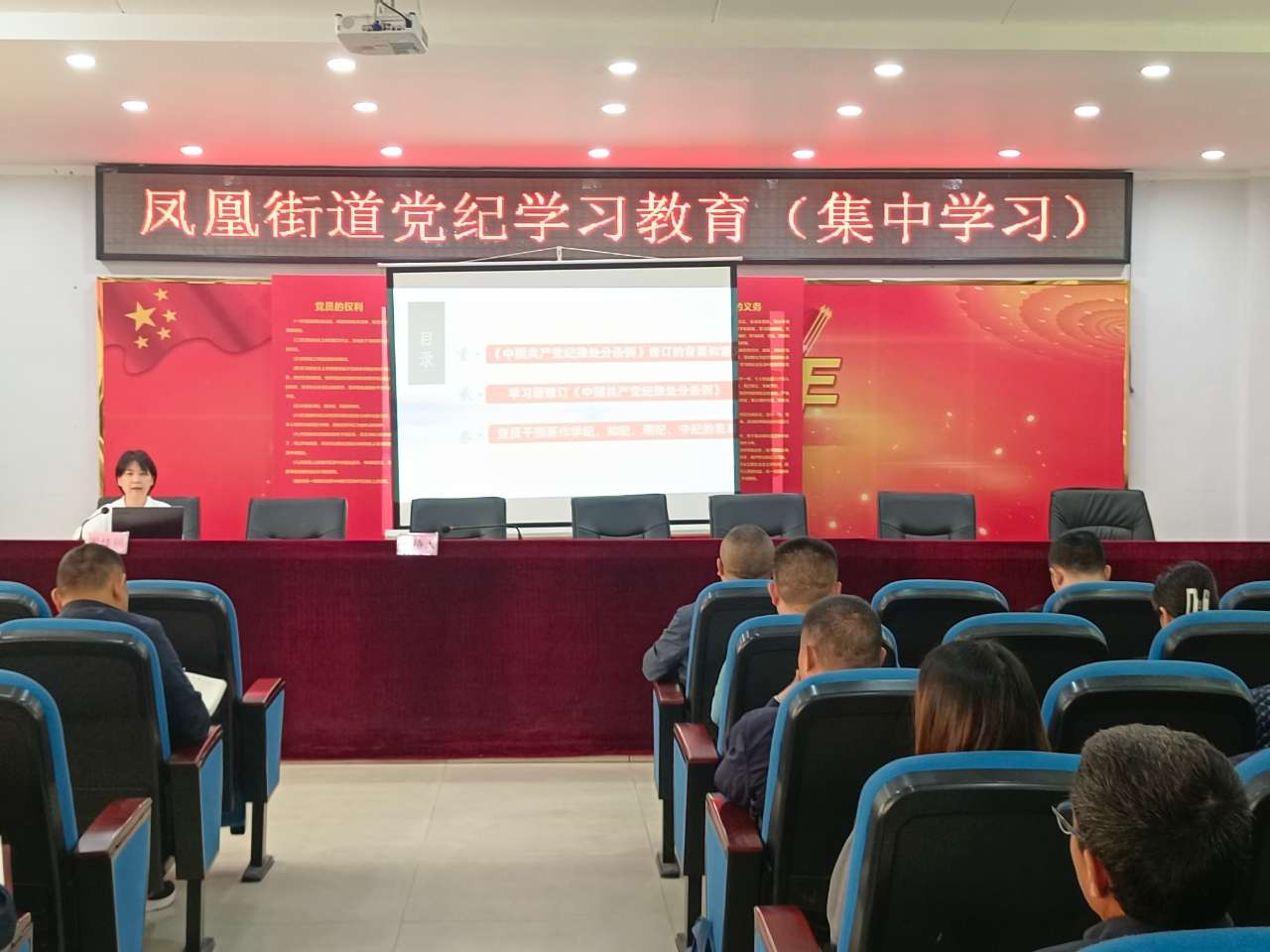 2024年4月30日,凤凰街道组织开展党纪学习教育集中学习会议。街道纪工委书记江军同志主持会议,区纪委机关党委书记周佳丽同志应邀作专题辅导。街道全体在家机关干部、社区三职干部参加。