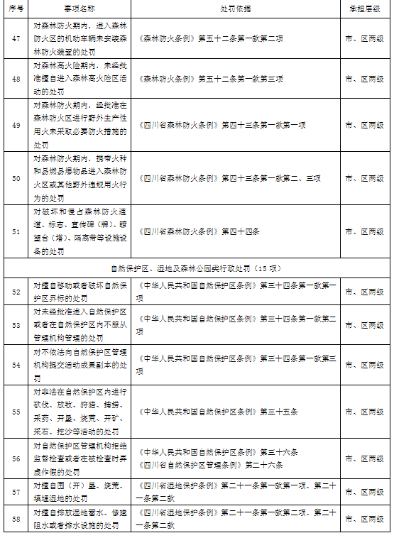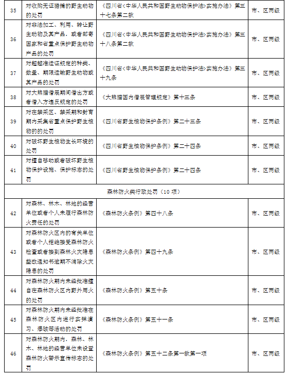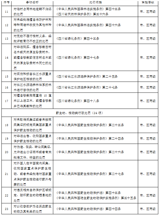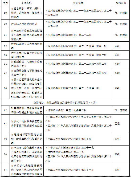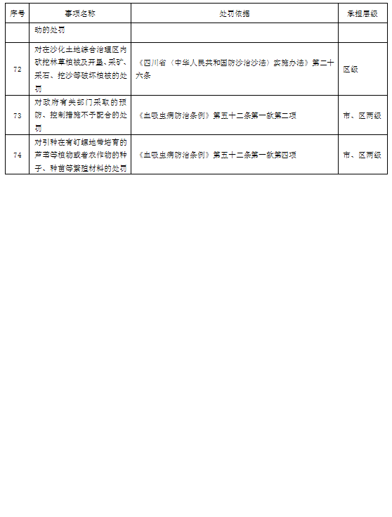 (三)权限范围:根据我区林业行政管理和行政执法实际,按照全市工作安排,决定由区森林公安分局行使5类74项法律法规规定的行政处罚权以及有关的行政强制措施(具体目录见附件),区林业局不再行使。