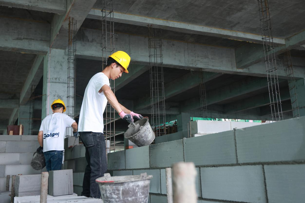 在施工现场,工人分布在多个作业点位,同步推进钢筋绑扎、空心模板安装及室内砌墙等主体结构施工。据项目现场技术负责人谭坤介绍,目前主体结构施工已完成75%,项目整体建设进度已完成60%,施工现场日均投入约200名工人,预计本月底完成全部三栋主体建筑的施工。