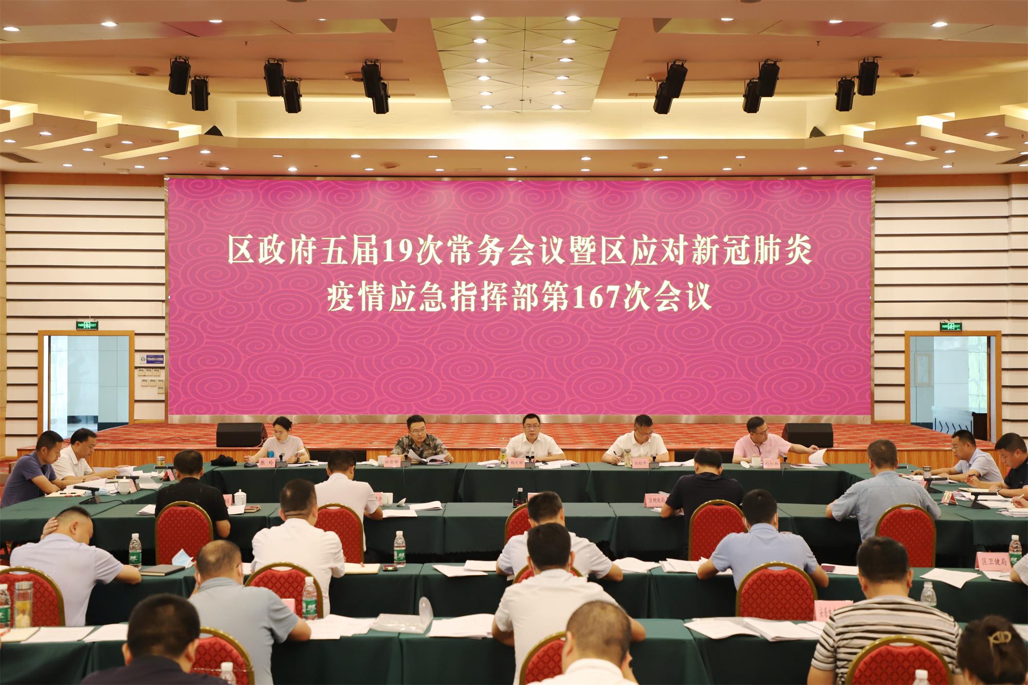 7月8日,区委副书记、区长、区应对新冠肺炎疫情应急指挥部指挥长杨文彬主持召开区政府五届19次常务会议暨区应对新冠肺炎疫情应急指挥部第167次会议,传达学习习近平总书记来川视察重要指示精神和省第十二次党代会精神以及近期省市区相关会议精神,安排部署疫情防控、撂荒地整治、耕地保护、粮食安全和巩固拓展脱贫攻坚成果同乡村振兴有效衔接等当前重点工作。