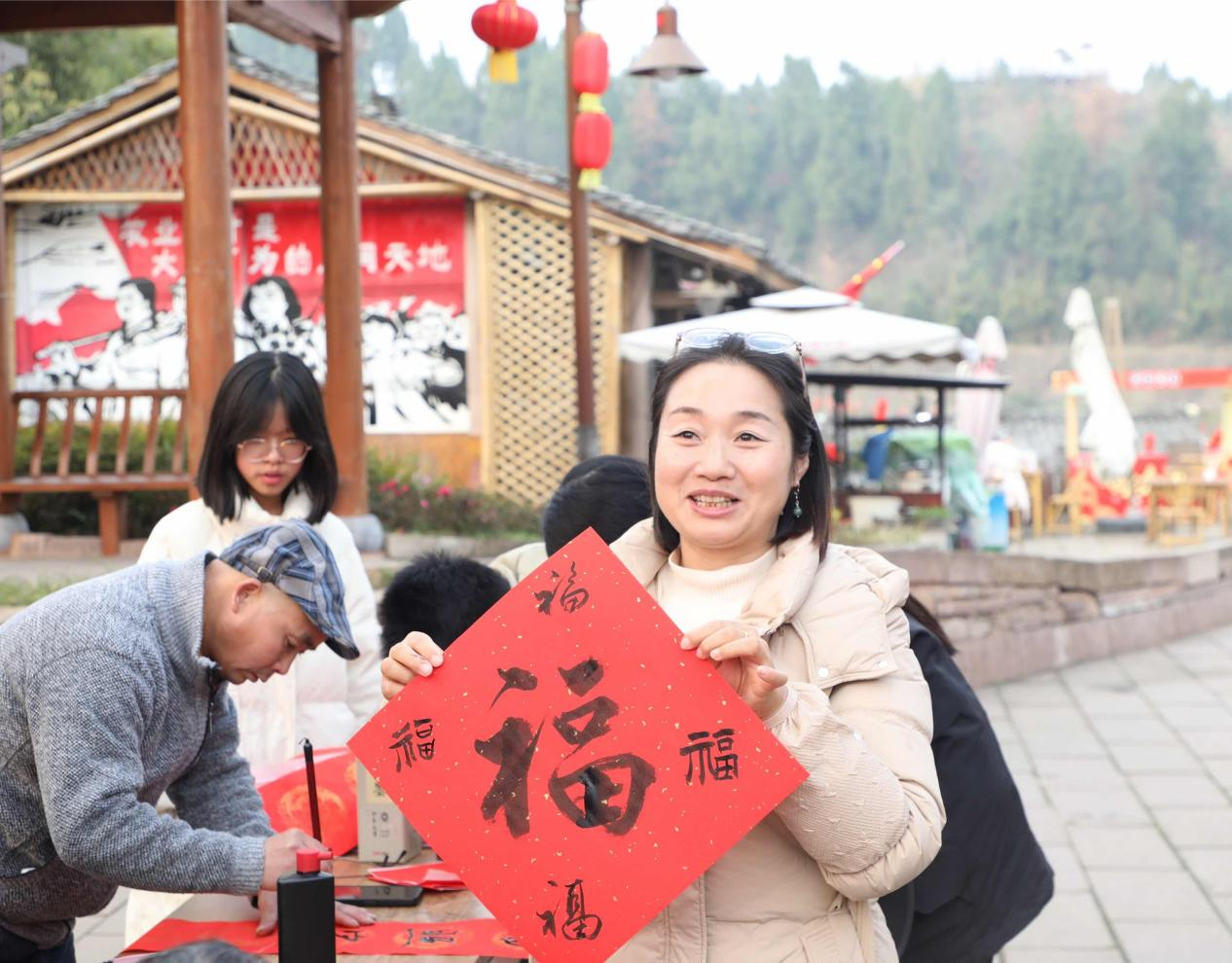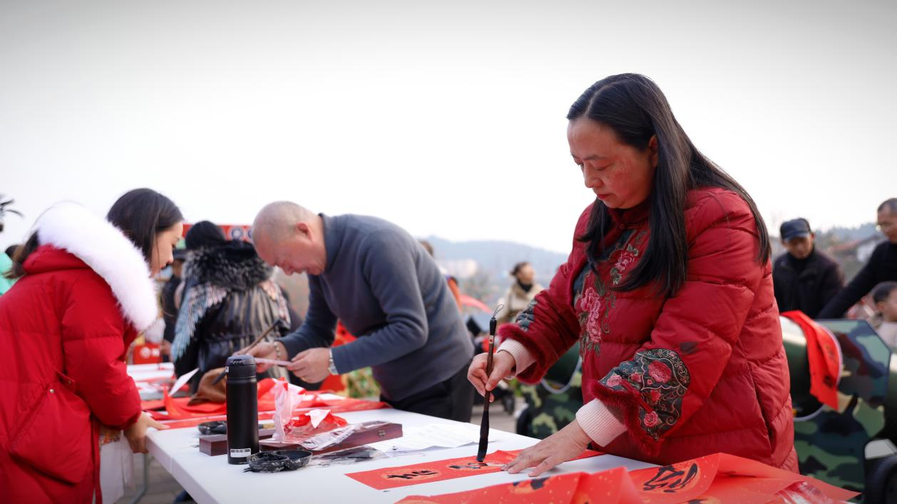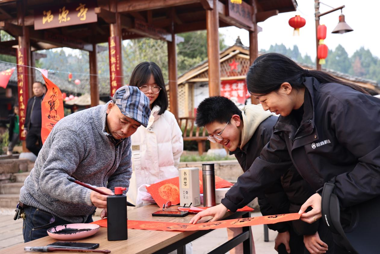 下午3点,小品、川剧、舞蹈等各类春节文艺节目在海龙凯歌开启,将活动氛围点燃;景区里,写春联、画糖人、美食……各类特色摊车前聚满游客,民俗体验、美食品尝让大家感受到浓浓的年味儿。