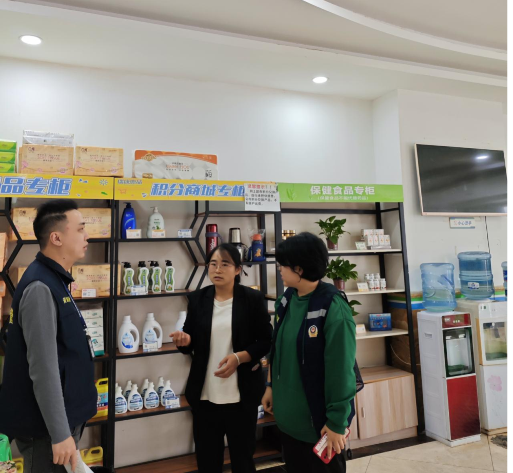 为使“盒”内会销主体树立良好的规则意识,工作人员现场指导督促其完善食品安全信息公示栏、明码标价、配备监控录像设备、分类建立食品会销备案及食品进货查验索证索票档案、严格规范场所内食品广告宣传并公示各类消费警示语等。