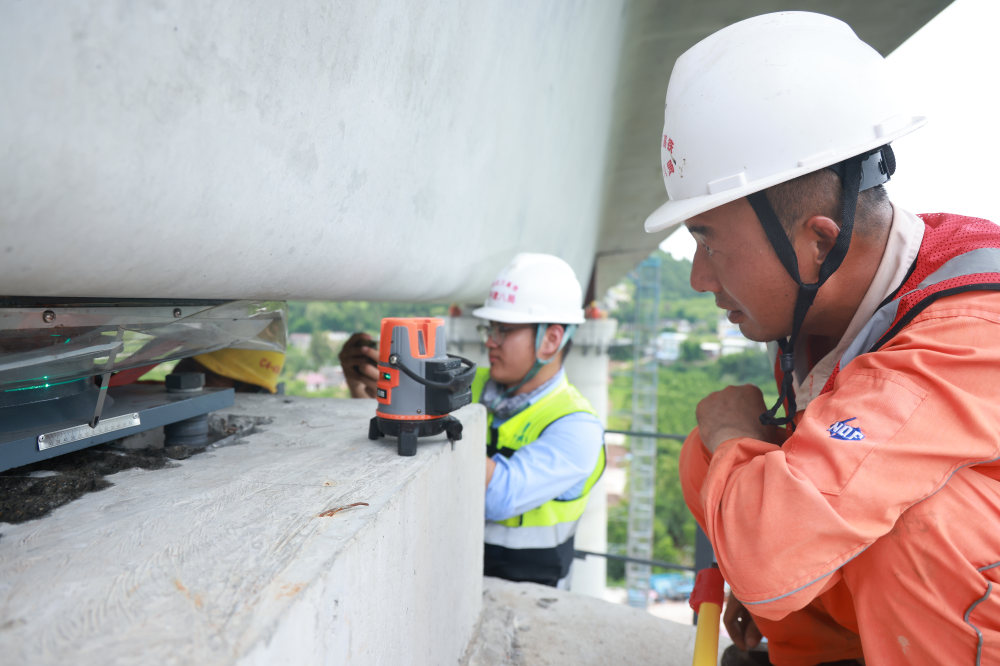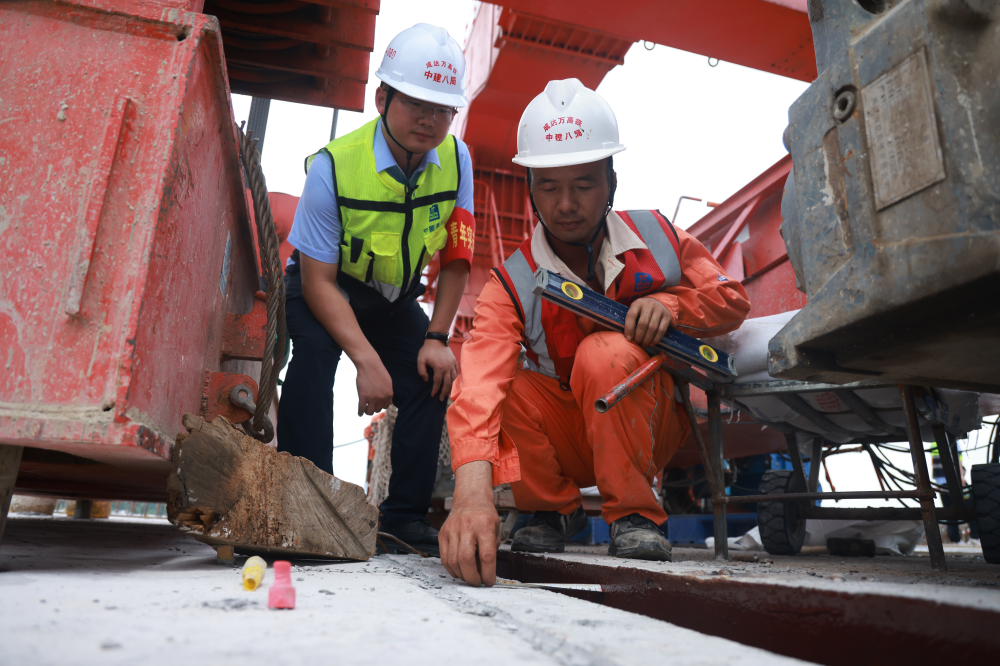 “每一榀梁的吊装、移动、落位,都关系到工程的整体安全和进度。”青年突击队队员曹长杰介绍,“700吨的‘巨无霸’,要保证梁缝距离在2cm以内,支座四角高差控制在2mm以内,说这是‘绣花’功夫一点都不为过。”