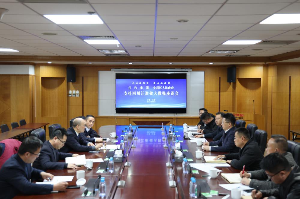 春回大地,万象更新。2月2日,农历大年十二,安居区委书记吴军率队赴安徽省合肥市拜会江淮汽车集团控股公司党委书记、董事长、总经理项兴初,双方愉快地回顾了地企全面深化合作、各美其美、美美与共的美好历程,并重点围绕支持安居汽车装备制造产业龙头企业四川江淮汽车有限公司做大做强、当好遂宁建设“绿色智造名城”排头兵、打造“成渝之星”安居极核开展深入洽谈。
