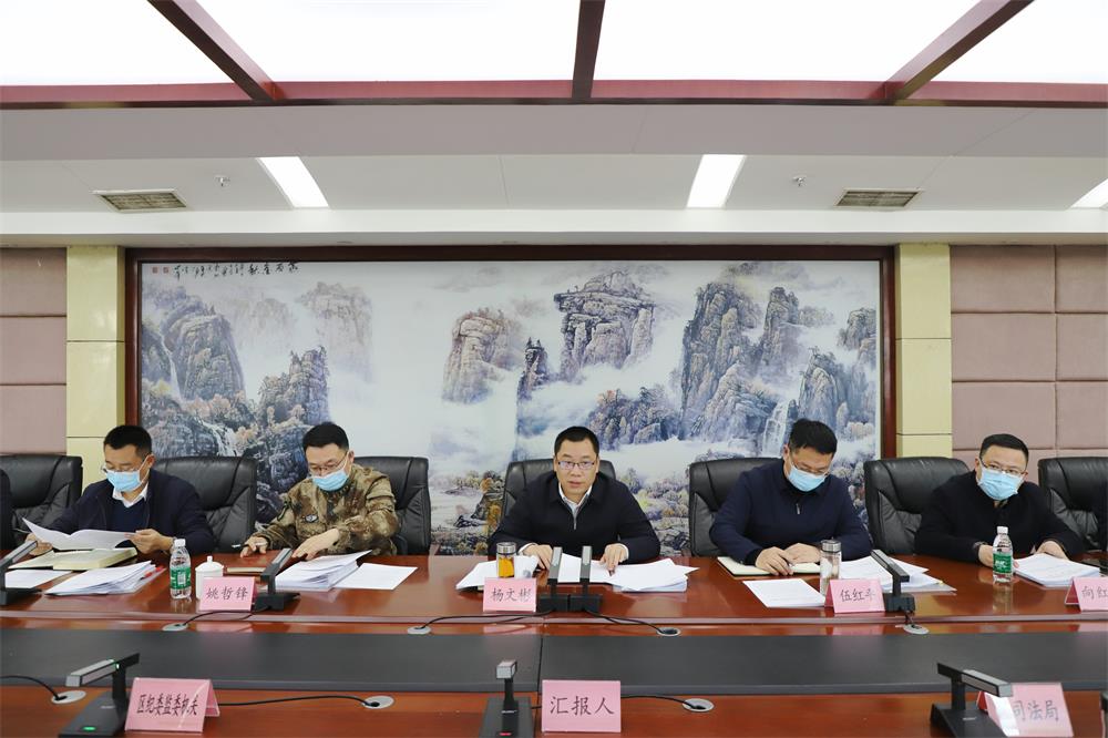 3月4日,区委副书记、区长、区应对新冠肺炎疫情应急指挥部指挥长杨文彬主持召开区政府五届13次常务会议暨区应对新冠肺炎疫情应急指挥部第143次会议,传达学习中央和省、市相关会议精神,听取疫情防控、安全生产、信访稳定、禁毒等工作情况汇报,安排部署相关工作等。
