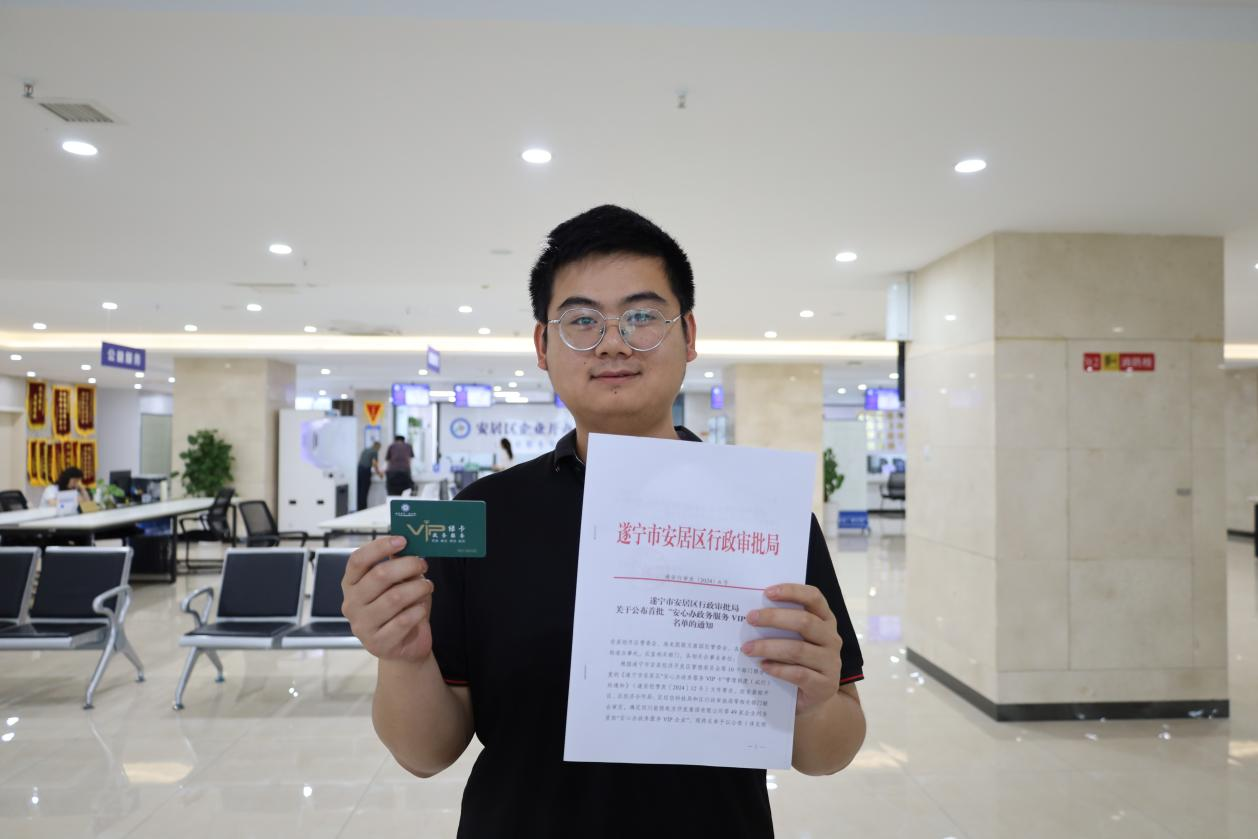 曾浩所领的政务服务VIP卡,是安居区为提升政务服务效率而特别推出的创新举措,专向辖区内招商引资企业和重点投资项目企业发放,持卡企业将享受到一系列优先办理、快速审批、专人对接等专属服务,有效缩短企业办事时间,降低办事成本。