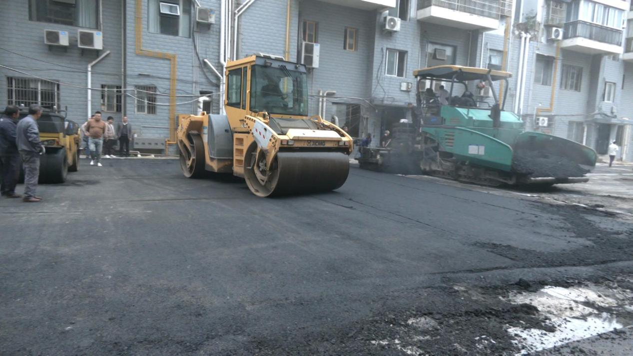 走进国贸东区改造现场,摊铺机正将沥青均匀铺设在路面上,压路机紧随其后进行压实作业,一条崭新的黑色路面已初具雏形。“目前小区内路面黑化正在全面推进,雨污水管网铺设和外墙翻新已基本完成。”项目总监理工程师陈卫介绍,目前施工现场采取了分区域、分时段交叉作业的方式,确保各道工序紧密衔接。