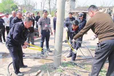 3月29日下午,安居区国道318线双林桥大桥路段某洗车场,现场执法人员一边拆除其违章搭建、私拉滥接电线,一边清理现场卫生。这是记者在安居区联合执法整治国道318线沿线环境现场看到的一幕。
