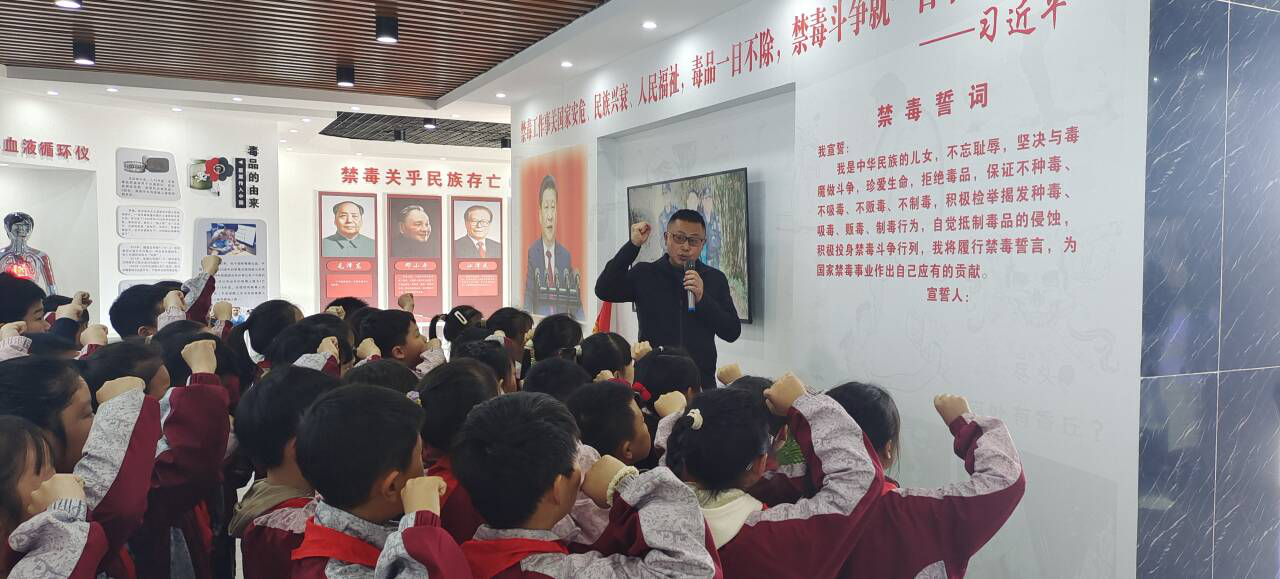 活动尾声,全体学生在老师的带领下来到了禁毒宣誓墙前庄严列队,高举右拳齐声宣誓,铿锵有力的誓言回荡在展厅内,更彰显了青少年们抵制毒品的坚定决心。