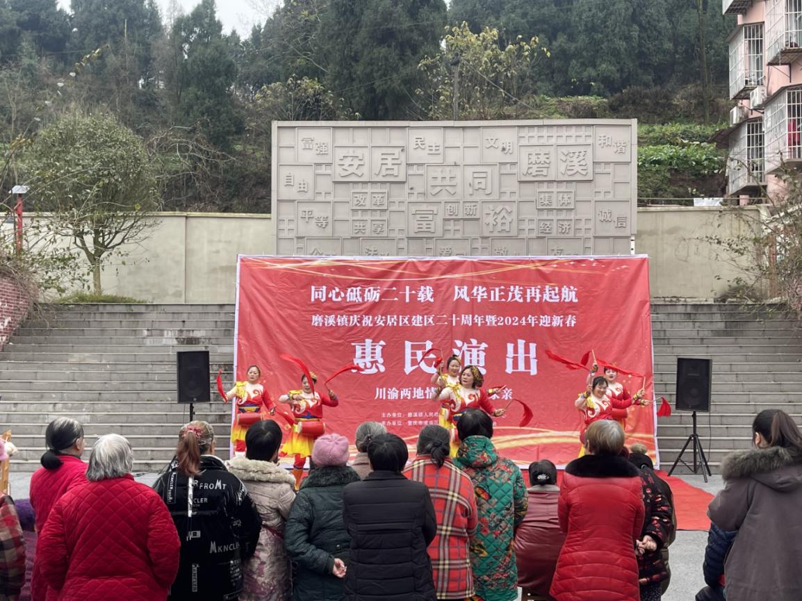 为隆重庆祝安居区建区二十周年,同时进一步丰富群众的精神文化生活,不断提升我镇公共文化服务水平,推进我镇文化事业繁荣发展。近日,我镇开展了以“同心砥砺二十载,风华正茂再启航”为主题的新春惠民演出。