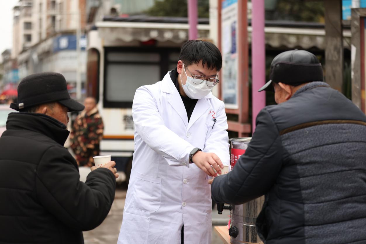 “这是由荆芥、防风、黄芪、白术、甘草等中药熬煮而成,具有预防流感的功效,给您来一杯。”2月12日下午,在区中医院门诊部外,医务人员热情地向过往市民递上一杯杯热腾腾的中药汤剂,并讲解流感的预防知识和中药汤剂的功效,受到来往市民的欢迎与好评。