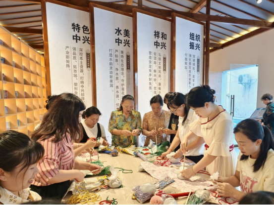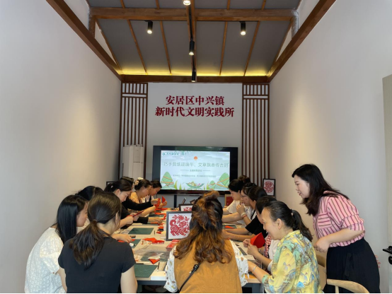 中兴镇水竹林村文化管家郭兰边做手工边笑着说:“今天这个活动真有意思!以前过节就是吃粽子,现在能亲手做剪纸、缝艾草锤,感觉过节更有味道了。”